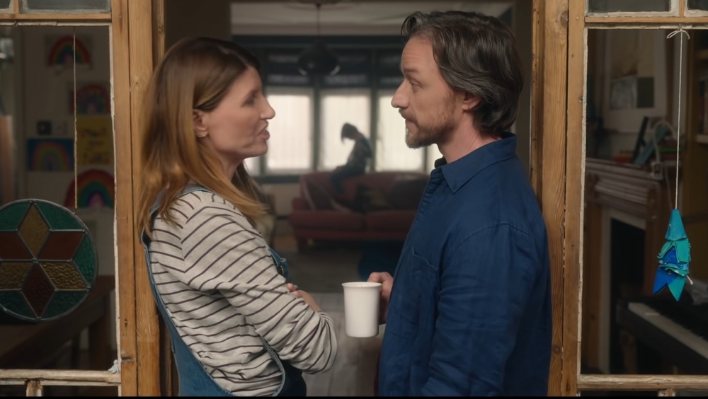 As soon as James McAvoy and Sharon Horgan (the couple is only credited as He and She, to give you an idea of how stripped-down and small-scale this pandemic-shot production is) burst onto the screen of Together (directed by three-time Best Director Oscar nominee Stephen Daldry, although perhaps more relevant here, written by TV scribe Dennis Kelly, a fitting choice given the episodic structure of the film and singular location) rambling about their lives breaking the fourth wall (I don’t think it’s ever made clear if they are talking to the audience or taping footage for their own personal usage, but it also doesn’t matter), there was an alarming cause for concern.