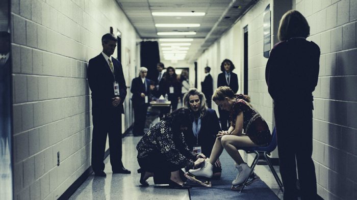 The issue with all biopics and films “inspired by true events” is how much of the real story they chance for dramatic purposes, and how it seems like the film is just trying to rewrite history. The Greatest Showman got criticized for this very reason, but it appears that I, Tonya found a way around it. How? By repeatedly pointing out that certain things did not happen, by making everyone an unreliable narrator. This is where most of the humour of the film comes from, as the juxtaposition between what the characters do and what their current day counterparts say in interviews makes room for quite a few laughs. Harding and other characters constantly break the fourth wall to clarify to the audience how the events transpired, or at least they try to while looking like they’re obviously lying.