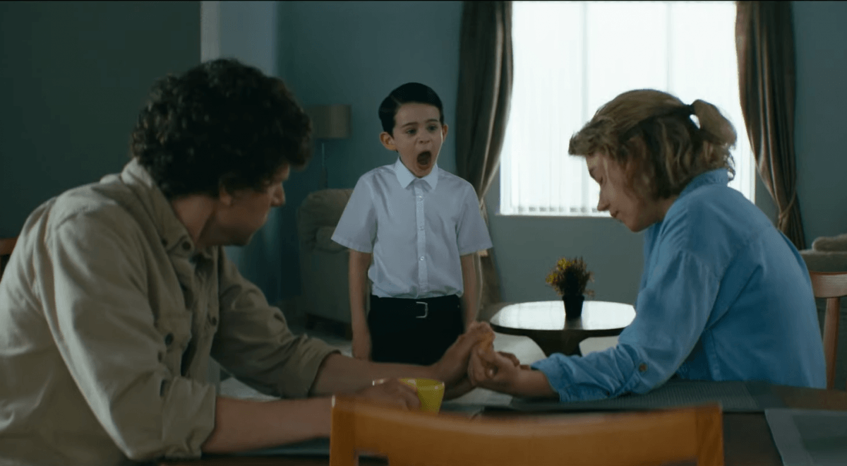 After doing everything possible to find some form of rescue, a baby in a cardboard box inexplicably shows up on their doorstep one morning. With no real choice, Gemma and Tom decide to raise the child while attempting to figure out what exactly is going on. This includes everything from Tom using his gardening equipment (a minor plot convenience that is forgivable factoring in what is accomplished with it) digging a hole in the grass while Gemma is the more nurturing of the two. Still, neither of them are exactly enthused about raising a young boy that shrieks like a pterodactyl and occasionally barks like a dog (yes, it’s fucking strange in the best possible way).