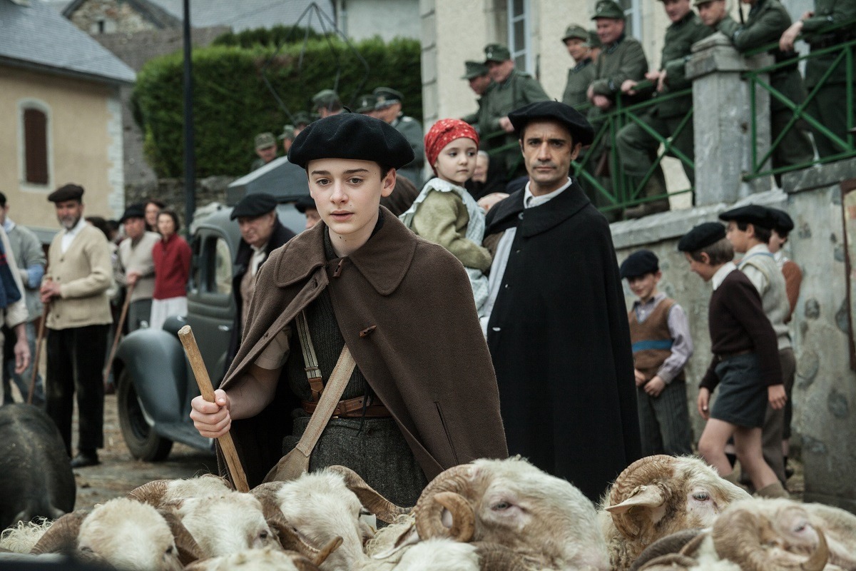 Waiting for Anya stars Jo (Stranger Things‘ Noah Schnapp) as a farm boy and sheepherder living in Nazi-occupied southern France who one day falls asleep on the job and stumbles into a dangerous encounter with a bear. Following his escape and return to the location, he meets Benjamin (Frederick Schmidt) who not only explains that the mama bear was protecting her cub, but offers all-around kind hospitality and the approval to visit the cub whenever he wishes. It’s not long before Jo starts exploring the area beyond that and discovers a group of children tucked away in secrecy in a barn.
