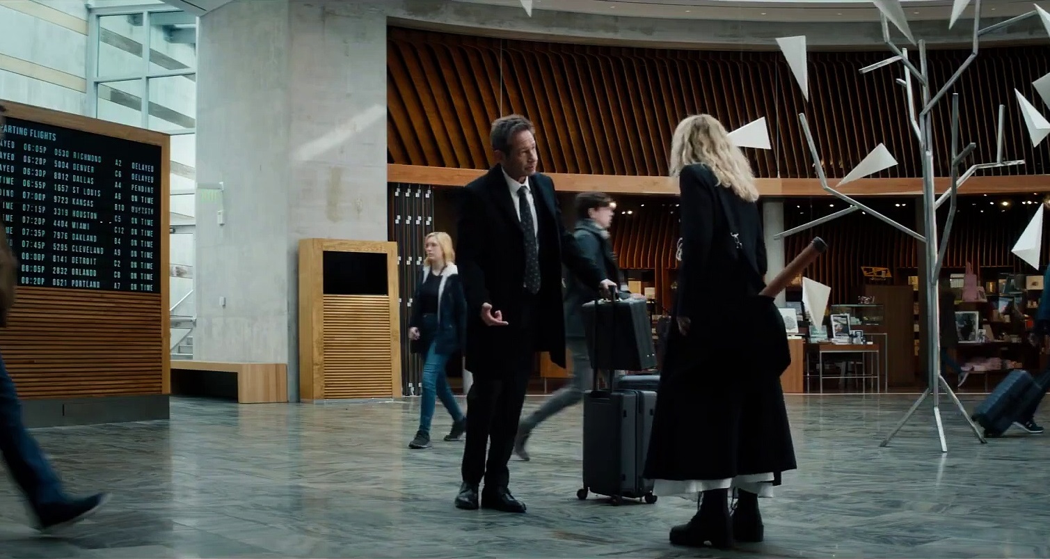 If any of that wasn’t overly cutesy enough, Meg Ryan and David Duchovny’s characters share nearly identical names; she is Willa, and he is William. Willa has a rain stick in hand, looking to board Boston to catch up with a friend for a cleansing ritual, whereas William is on a work trip, also getting away from his family life, which is currently falling apart (things are rocky with his wife, and he struggles with supporting his teenage daughter’s ambition of becoming a professional dancer.)  The blizzard and godlike airport voice (Hal Liggett) have other plans.
