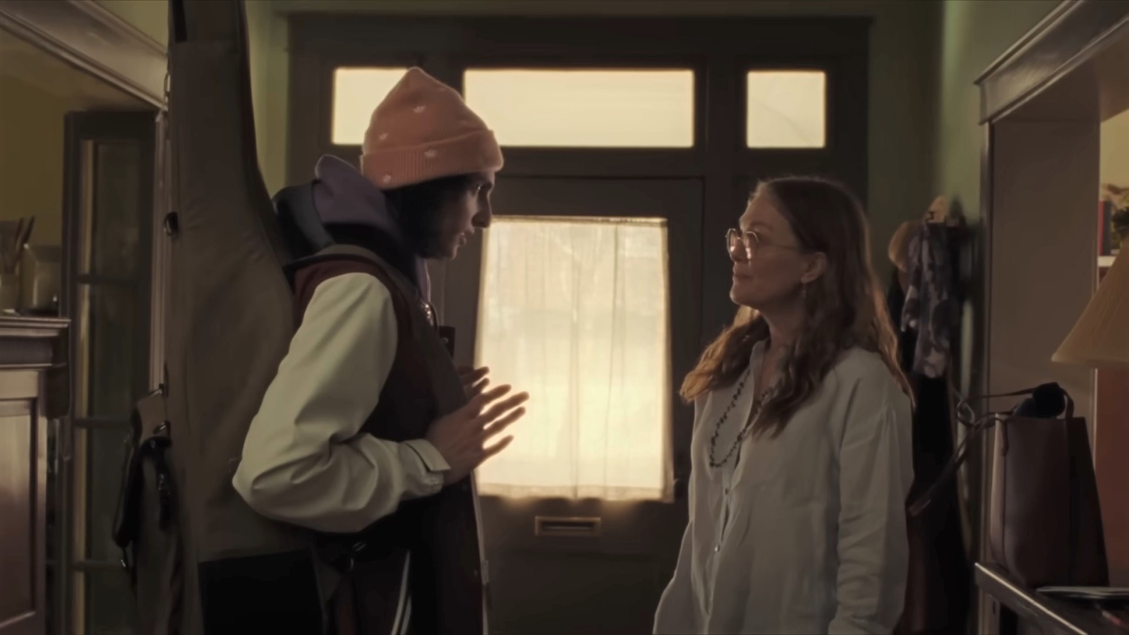 It’s not that there’s anything wrong with doing this, but rather the kind of person that Ziggy is; an immature jerk who will verbally snap on his mom Evelyn (Julianne Moore) for cracking the door open a smidge while he is live streaming. There is some real Eric Cartman playing World of Warcraft energy here.