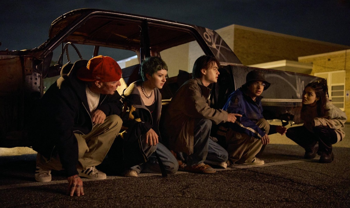 In addition to those electronics going violently haywire, computers have become sentient, tapping into an early Internet perception of viruses and hacking alongside creative elements, giving them bodies of metallic junk. Laura (the most popular girl in school and played by Rachel Zegler) happens to be the school’s best coder, mining whatever intelligence she can from decommissioned/Wi-Fi-disconnected computers. Eli (Jaeden Martell) is completely smitten with her but does not know his identity or the social group he belongs to. He is also becoming increasingly defeated as Laura looks like she might reunite with her ex-boyfriend to survive the night.