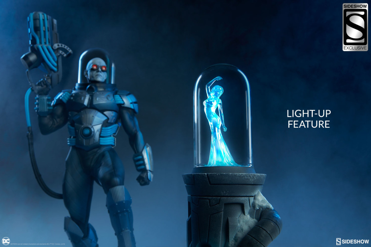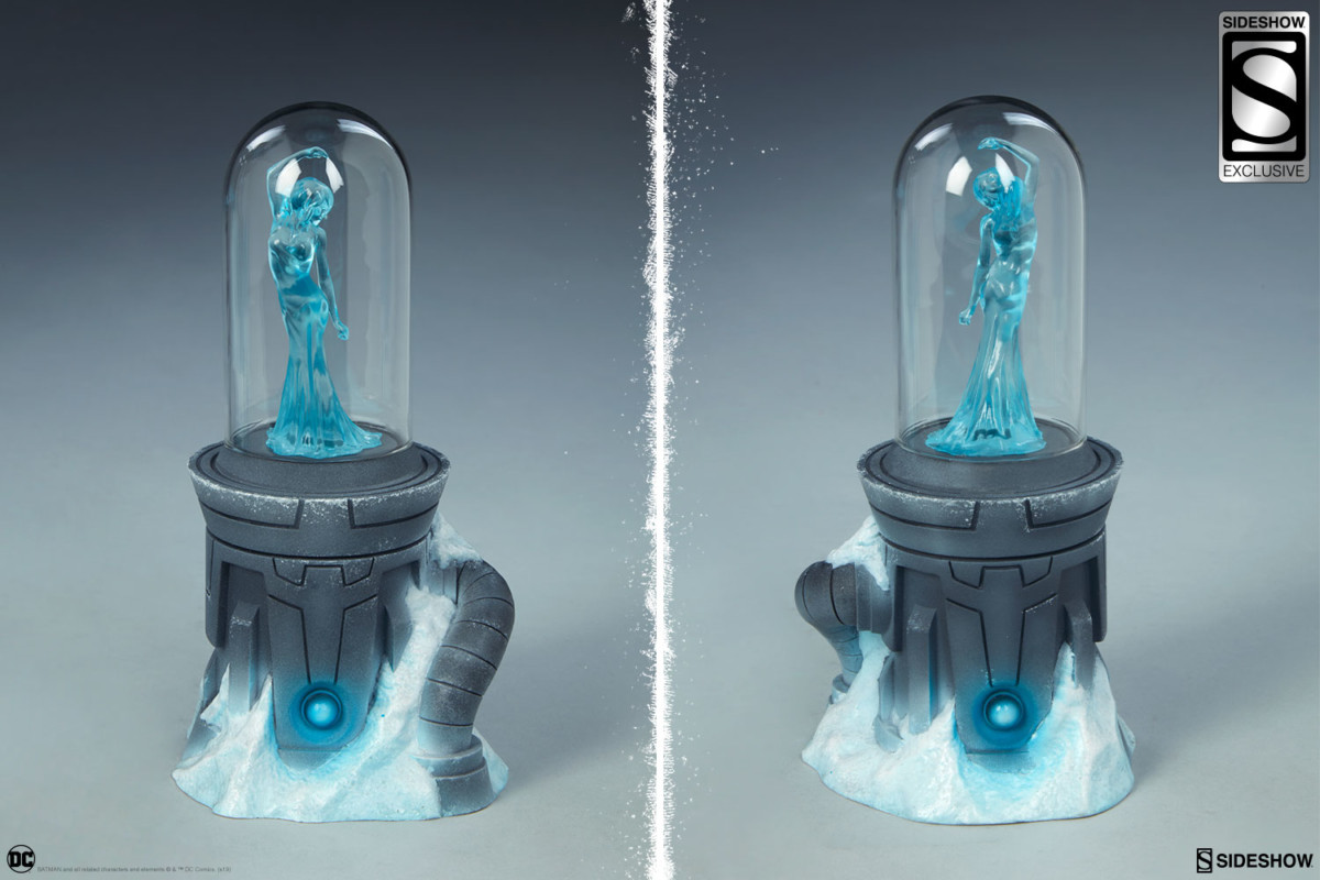 The Exclusive Edition of the Mr. Freeze Premium Format™ Figure comes with a frozen effigy of his beloved Nora Fries under a cryonic dome, which includes a light-up feature. This beautiful exclusive proximity piece can be displayed alongside the statue to melt even the coldest of hearts.