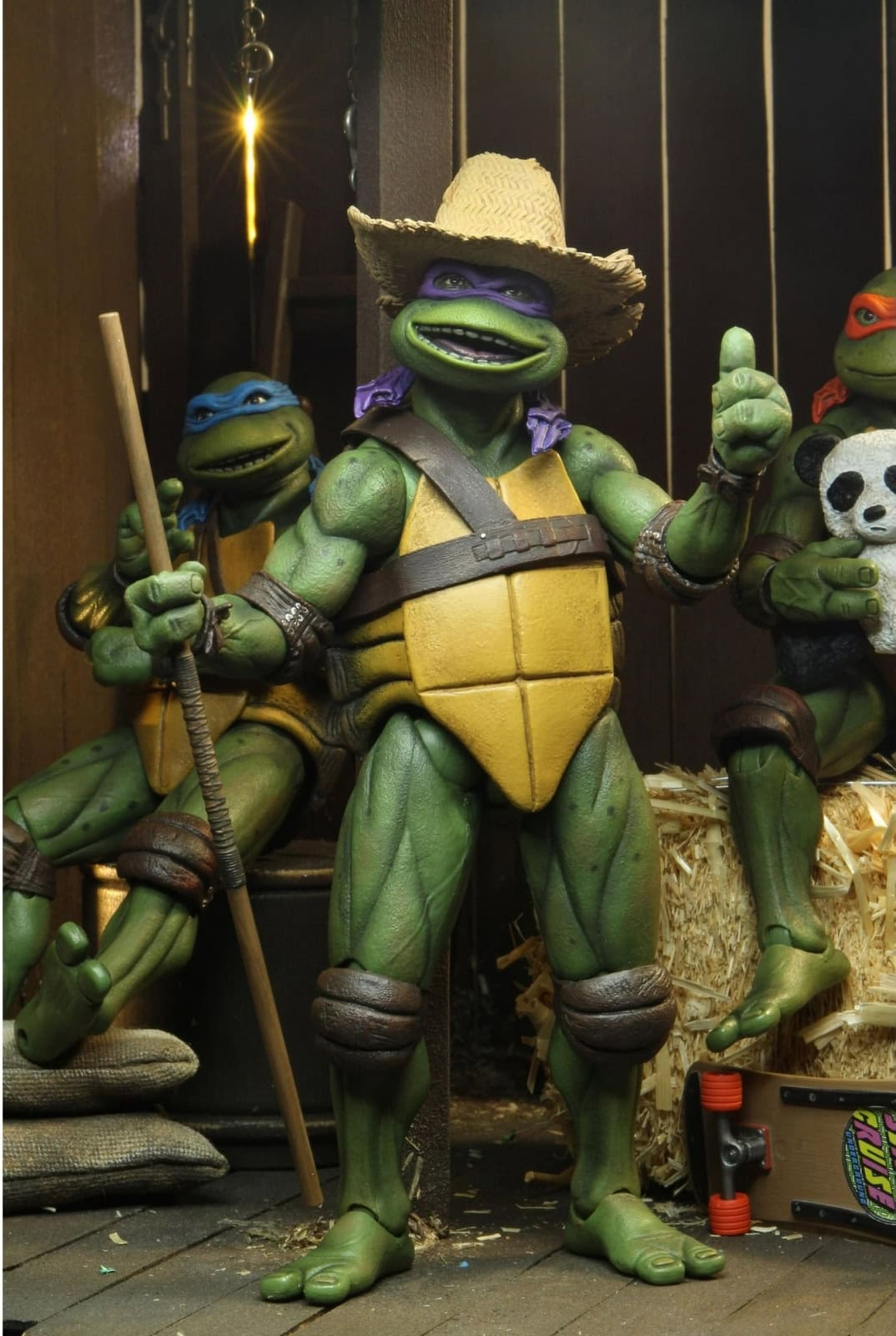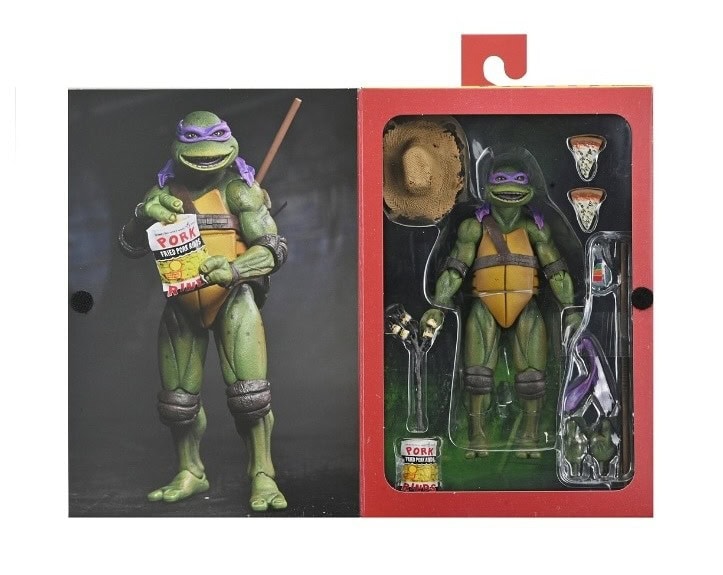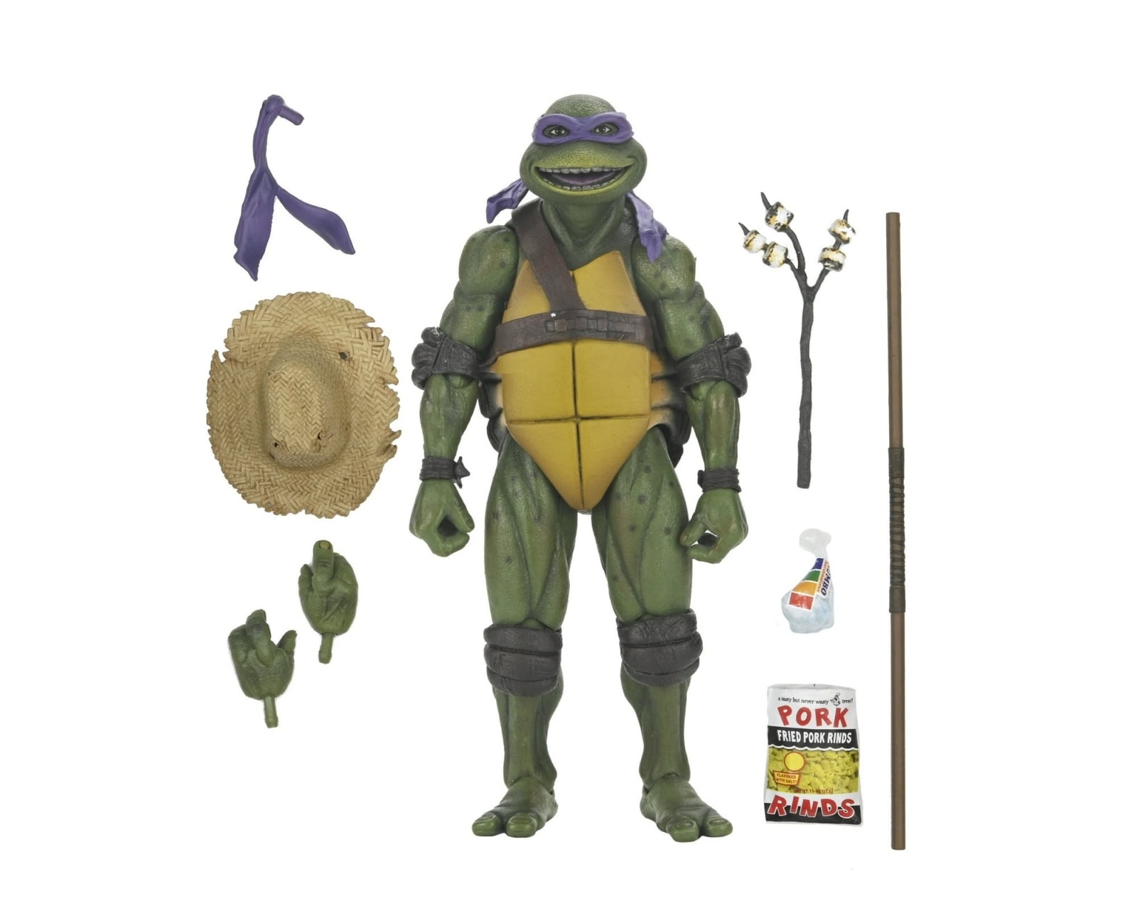 Shell-a-brate the 35th anniversary of the original Teenage Mutant Ninja Turtles movie with NECA! After wading in a puddle of radioactive waste, four radical reptiles are transformed into New York City’s greatest crime-fighting quartet! This special anniversary Ultimate action figure features the original 1990 movie version of Donatello with screen-accurate sculpting and authentic details. Accessories include extra hands, cowboy hat, roasted marshmallows, bo staff, bag of marshmallows, pork rinds, and pizza slices. This 7-inch scale figure comes in all-new, collector-friendly Ultimate packaging with opening front flap.