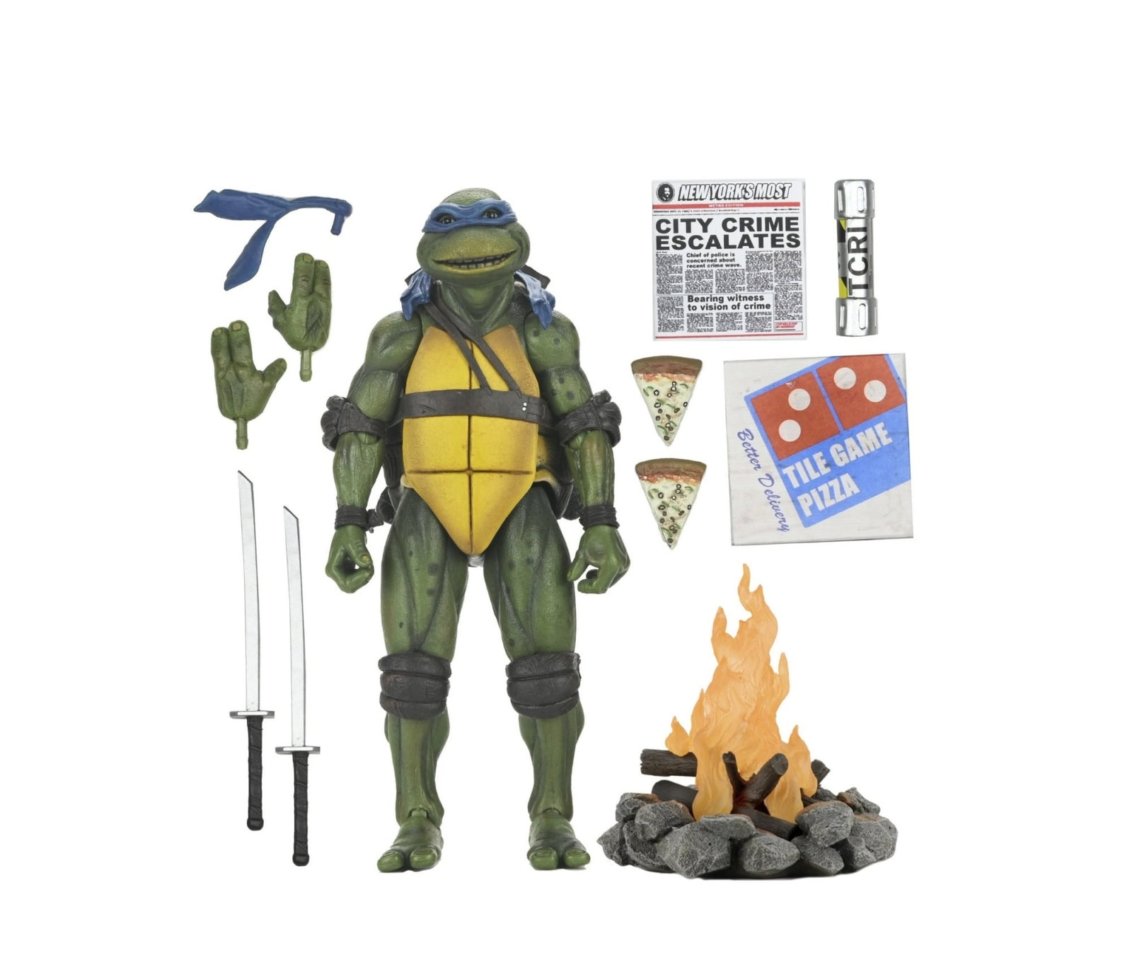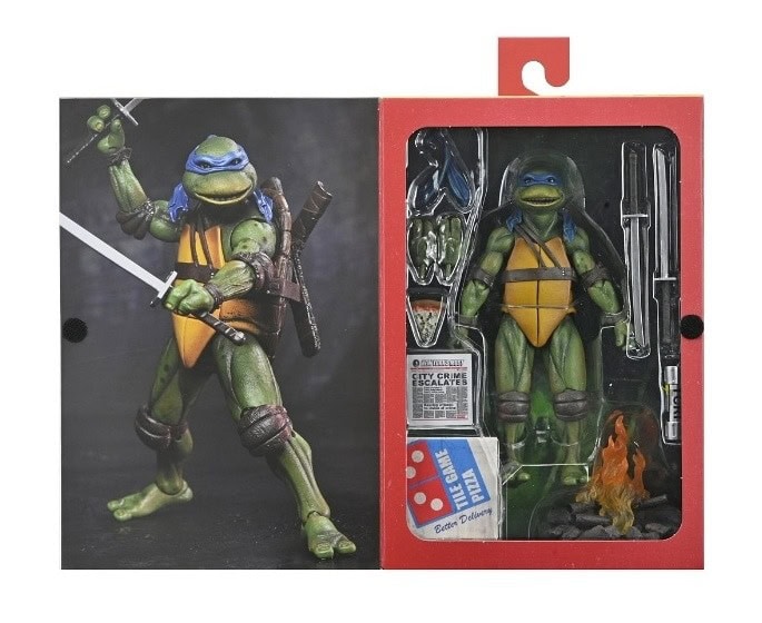 Shell-a-brate the 35th anniversary of the original Teenage Mutant Ninja Turtles movie with NECA! After wading in a puddle of radioactive waste, four radical reptiles are transformed into New York City’s greatest crime-fighting quartet! This special anniversary Ultimate action figure features the original 1990 movie version of Leonardo with screen-accurate sculpting and authentic details. Accessories include extra hands, campfire, swords, pizza box, newspaper, mutagen canister, and pizza slices. This 7-inch scale figure comes in all-new, collector-friendly Ultimate packaging with opening front flap.