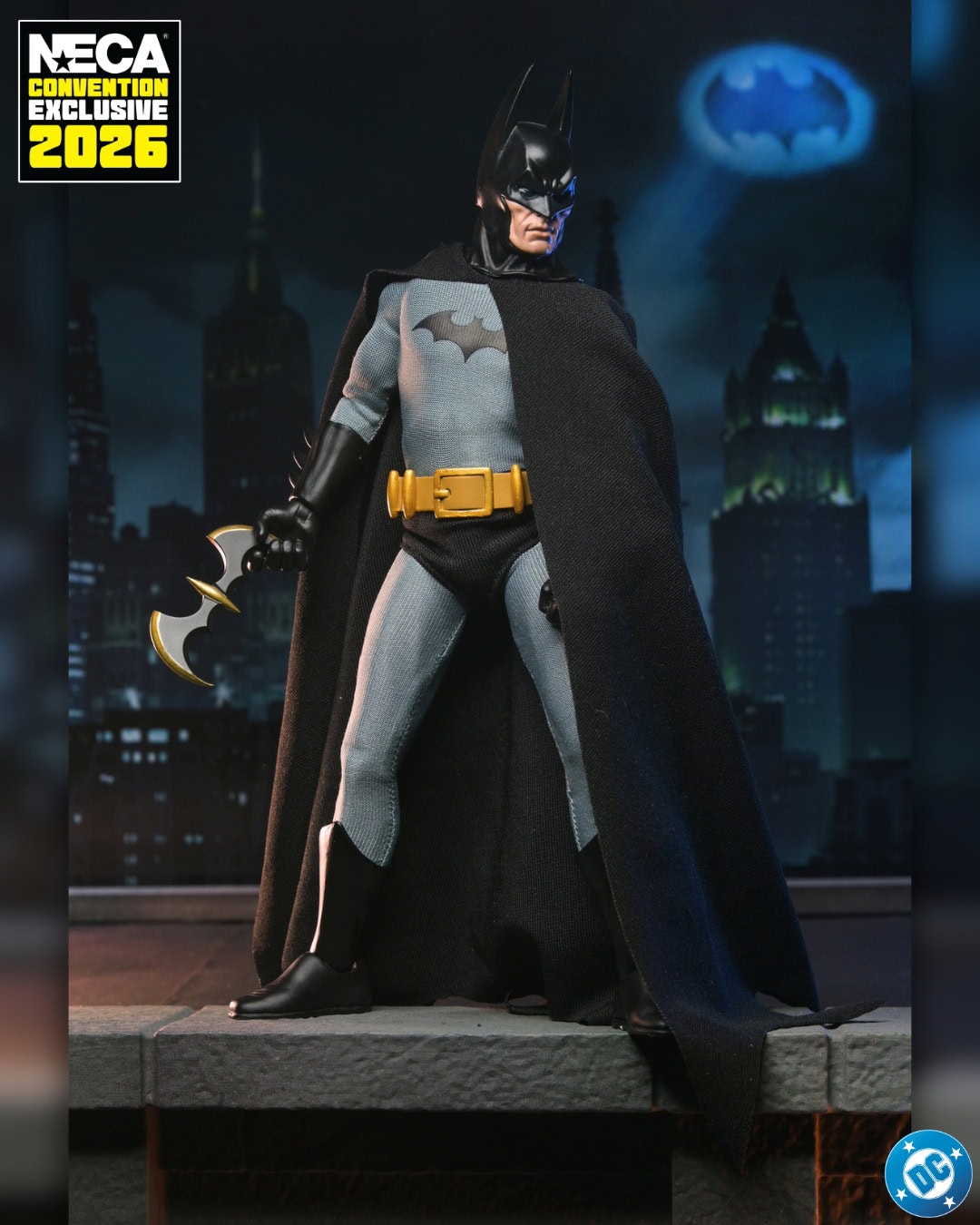 NECA has officially unveiled its 2026 Convention Exclusive Batman 8-inch action figure, which pays tribute to the Dark Knight’s classic look, complete with fabric clothing and various accessories. Pre-orders for the figure are open now, with a price of $45; check out the official promotional images and details here…
