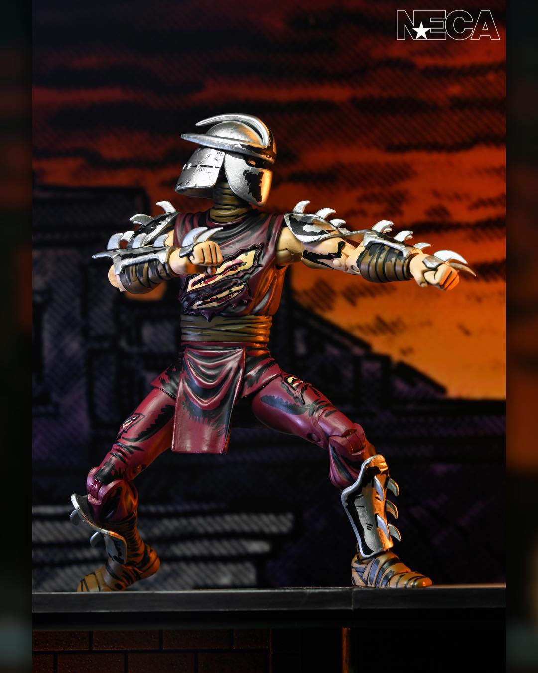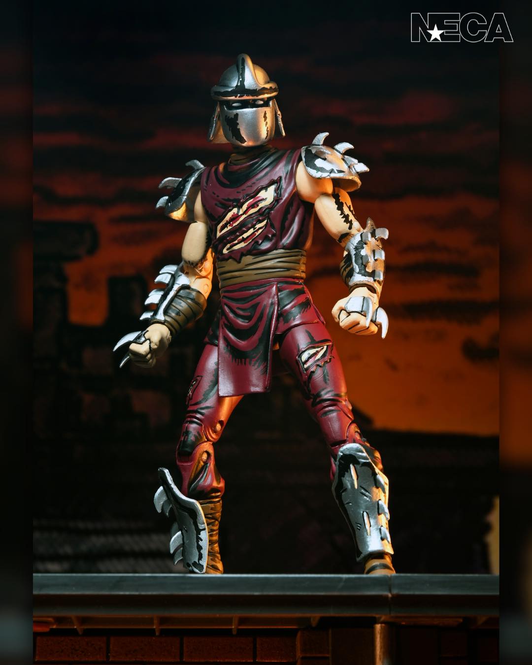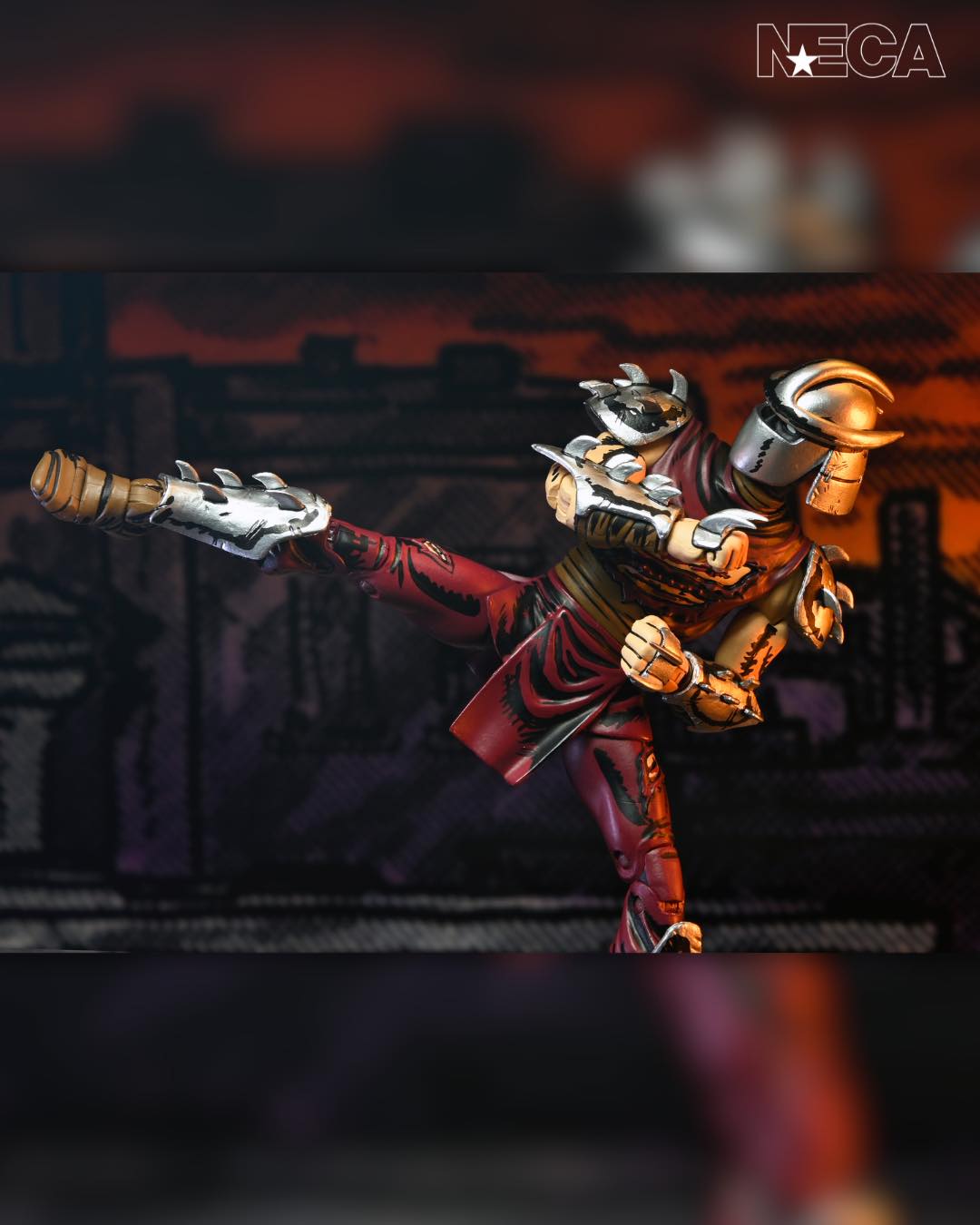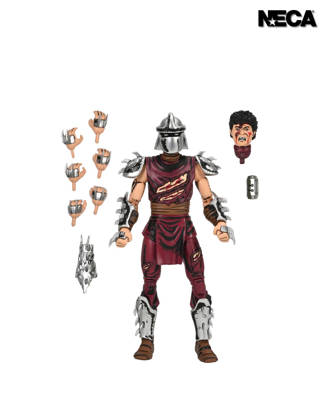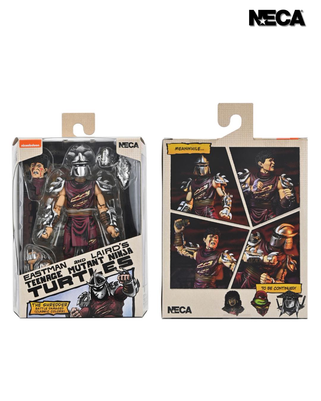 Based on the original Eastman & Laird Teenage Mutant Ninja Turtles comic books from Mirage Studios! Oroku Saki has inherited the role of The Shredder from his fallen brother, Oroku Nagi. The bitter rivalry between the Oroku and Hamato clans rages on, and The Foot will stop at nothing until their former master is avenged. Featuring a fan-demanded classic color paint deco, this battle-damaged 7-inch scale action figure includes interchangeable hands, extra head, thermite grenade, and destroyed gauntlet. Comes in special comic-book tribute window box packaging illustrated by Kevin Eastman.
