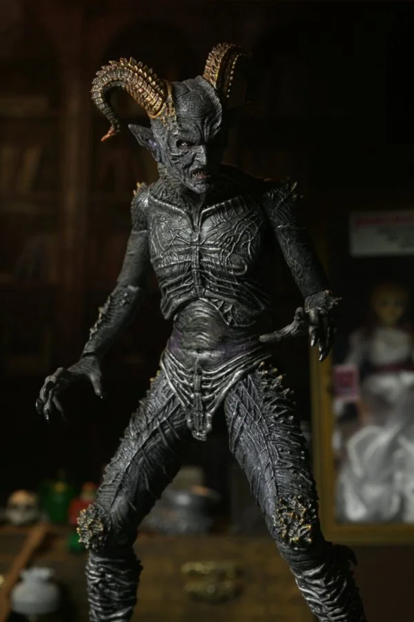 Summon pure terror into your collection with Malthus the Demon, a new Ultimate action figure by NECA! From The Conjuring Universe, this powerful demonic entity is the main antagonist of the Annabelle films, using the doll as a conduit to torment people and find a human host. Standing over 7 inches tall, this fully articulated figure features intricate sculpted detail and haunting deco that brings his sinister essence to life. Malthus includes three interchangeable heads with different expressions, as well as alternate hands and swappable lower leg designs. A must-have for horror fans, NECA collectors, or anyone brave enough to welcome him into their home! Comes in collector-friendly window box packaging with opening front flap.