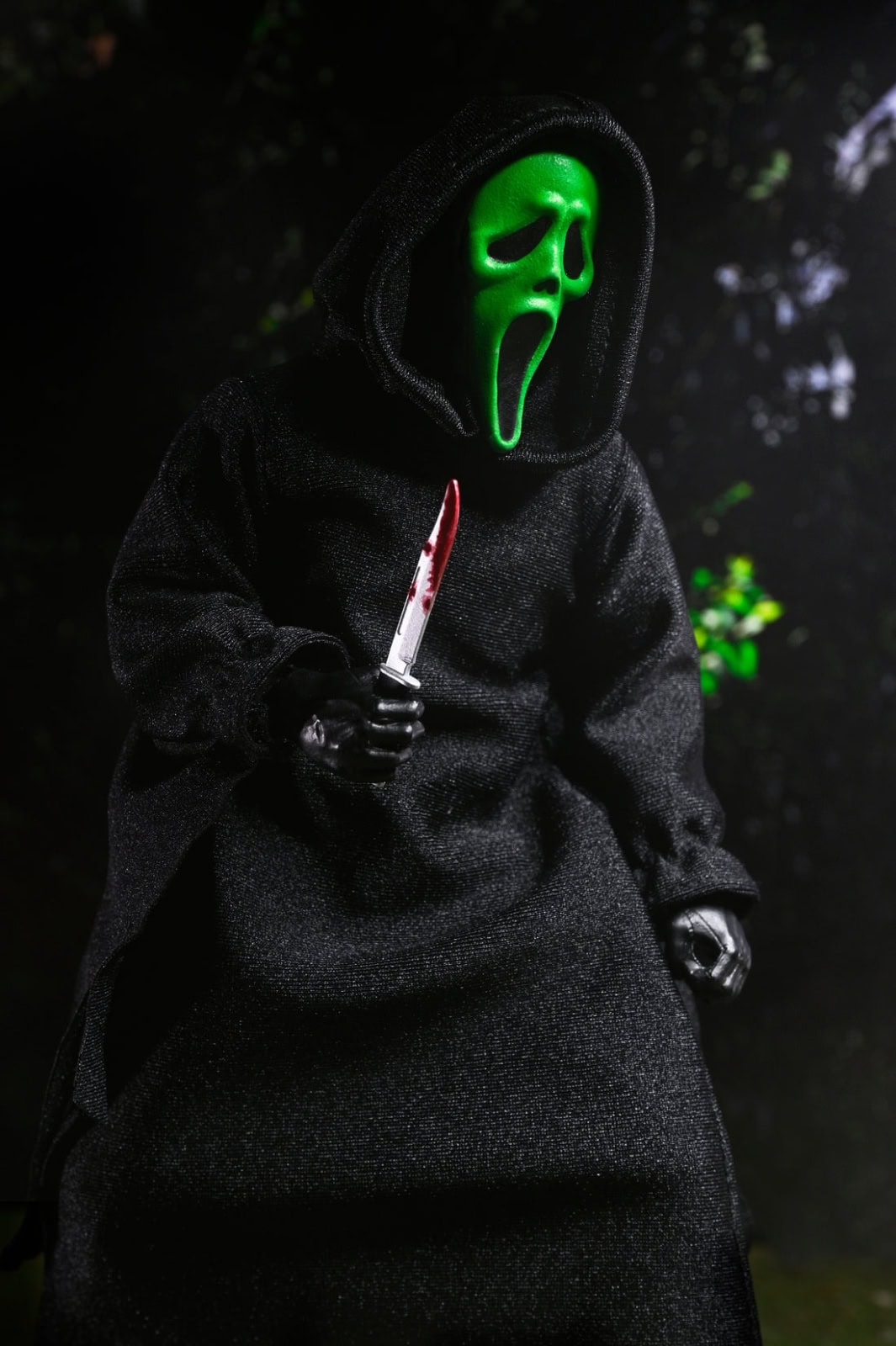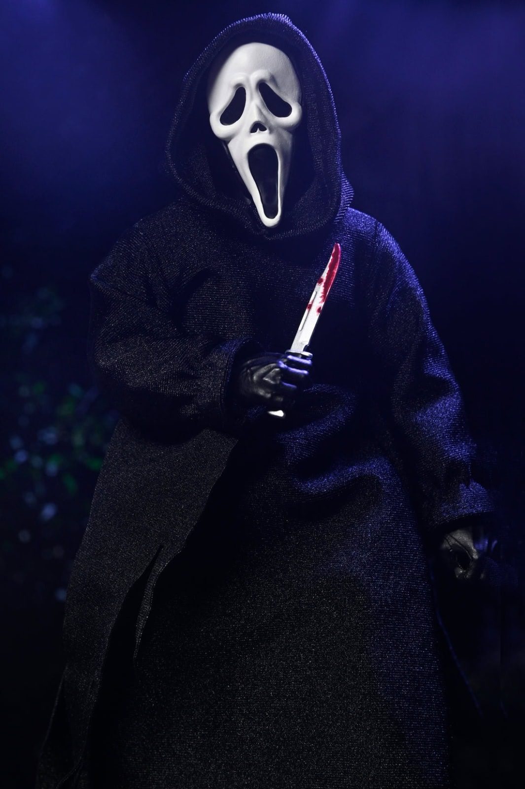 Ghost Face lives! The iconic slasher returns with a terrifying new twist in this updated 8-inch clothed action figure from NECA. Based on Fun World’s legendary costume, this version brings the “Icon of Halloween” to life with updated masks and tailored soft goods clothing, which pays homage to vintage toy lines. Featuring interchangeable face plates, heads, and hands, this figure also includes both clean and bloodied knives, and a voice changer. Ghost Face comes in new, redesigned window box packaging perfect for collectors!