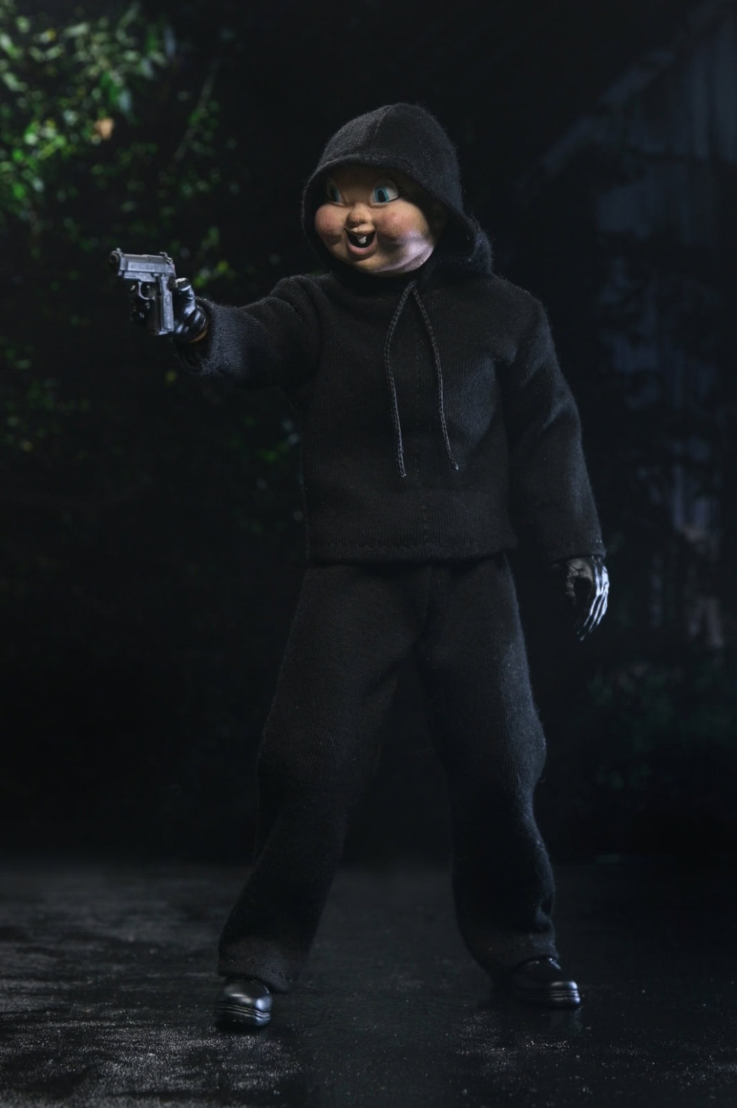 Relive a modern horror classic over and over again…on your shelf! From Blumhouse’s Happy Death Day and Happy Death Day 2U, NECA presents this retro-style clothed action figure of the Bayfield Babyface Killer. Don’t let that face (or name) fool you! There’s nothing cute or innocent about this ruthless killer. Dressed in tailored fabric clothing inspired by vintage toy lines, this fully articulated, 8-inch scale figure includes interchangeable masks, heads, hands, kitchen knives, baseball bat, sledgehammer, birthday cupcakes, and pistol.
