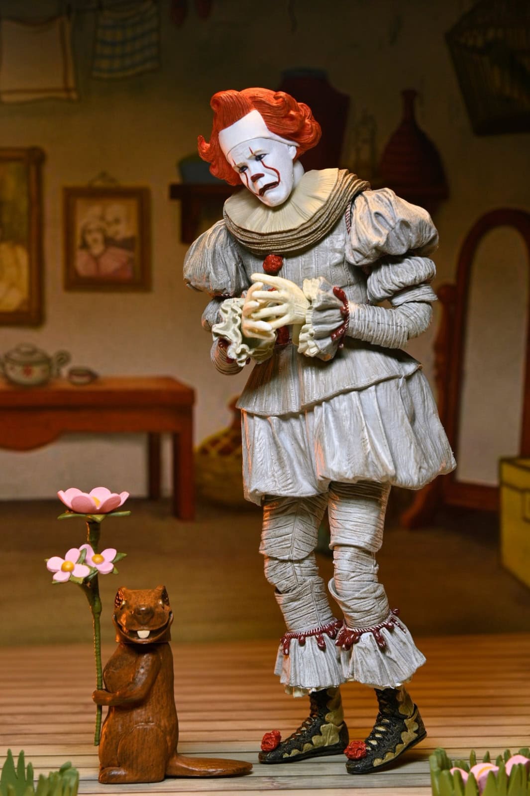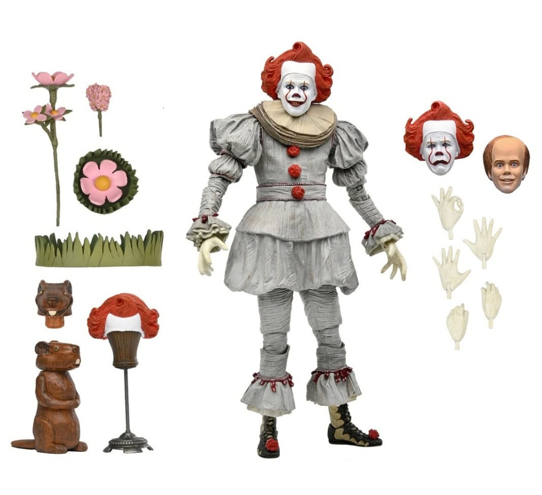 From the twisted world of horror author Stephen King and the new HBO series IT: Welcome to Derry comes a new NECA Ultimate action figure! Before Pennywise was a demonic clown, he was Bob Gray, a circus performer playing a clown onstage. Based on the show’s flashback scenes, this 7-inch scale figure includes multiple interchangeable heads and hands, stage props, flowers, wooden beaver, wig, and wig stand. Comes in collector-friendly window box packaging with opening front flap.