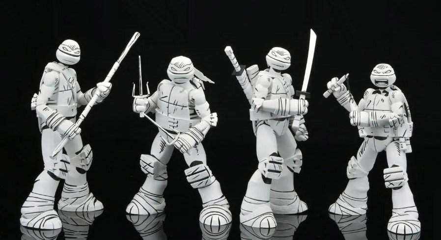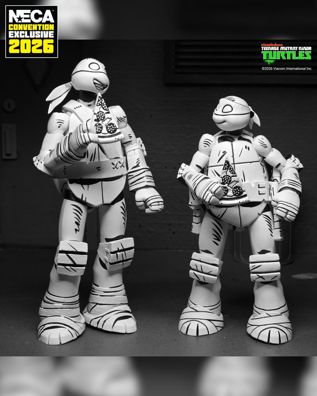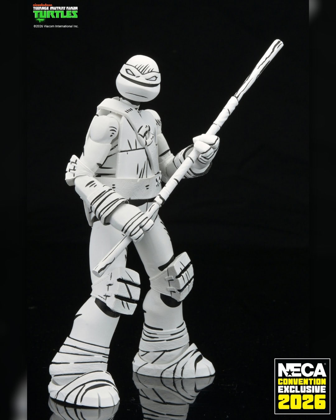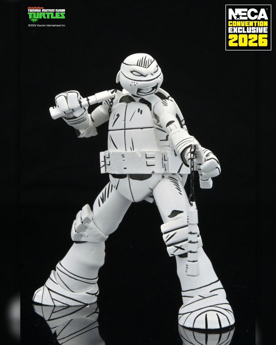 NECA has officially unveiled its 2026 convention exclusive Teenage Mutant Ninja Turtles action figure 4-pack which includes black and white editions of Leonardo, Donatello, Raphael, and Michelangelo, inspired by their appearance in Nickelodeon’s 2012 animated series, along with a selection of interchangeable heads, hands, weapons and accessories. The set is available for a limited pre-order now, priced at $150; take a look here…