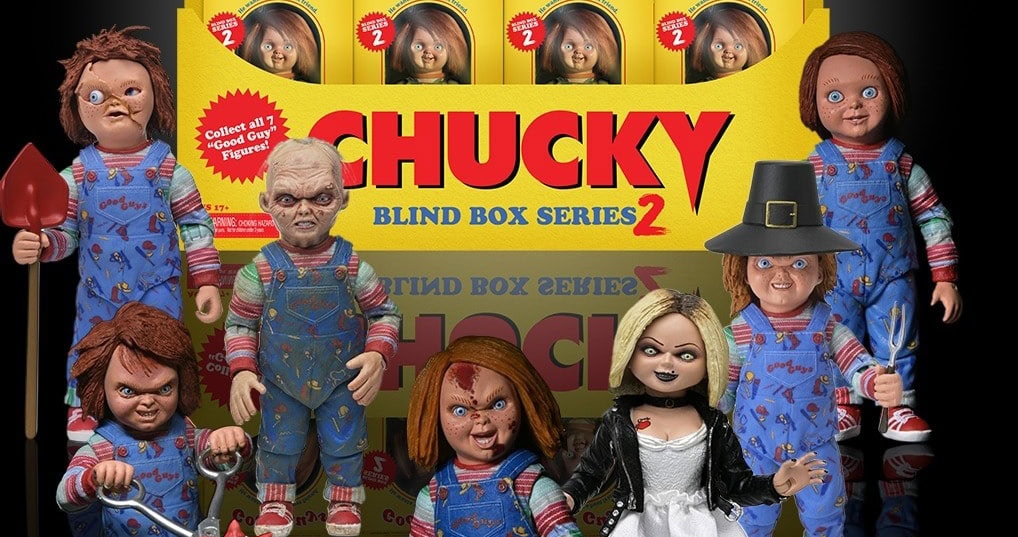 NECA has revealed series 2 of its Chucky Blind Box figures which includes figures for Poster Chucky, Thanksgiving Chucky, “Good Guy” Tommy, and Busted-Up Tommy from 1988’s Child’s Play 2, and Laughing Chucky, Old Chucky, and Tiffany from the Syfy series Chucky; check out the promotional images here…