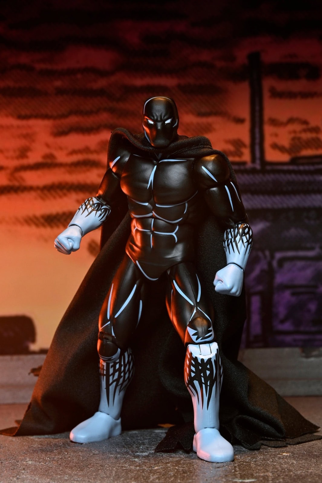 Based on his first appearance in Eastman & Laird’s original Teenage Mutant Ninja Turtles comics from Mirage Studios! Nobody, the secret identity of Officer Longer, is here as a 7-inch scale NECA action figure with an all-new sculpt! He features a soft goods cape, grappling hook with real string, and a “blaster.” Comes in collector-friendly packaging with original artwork by Kevin Eastman.