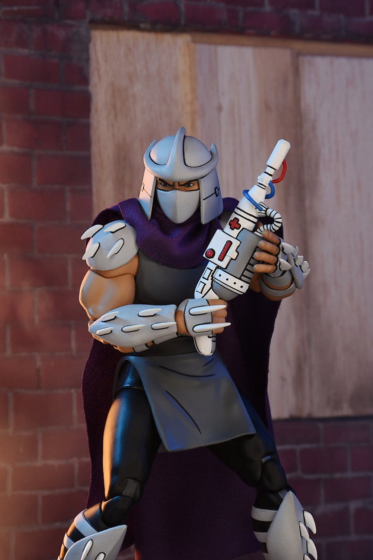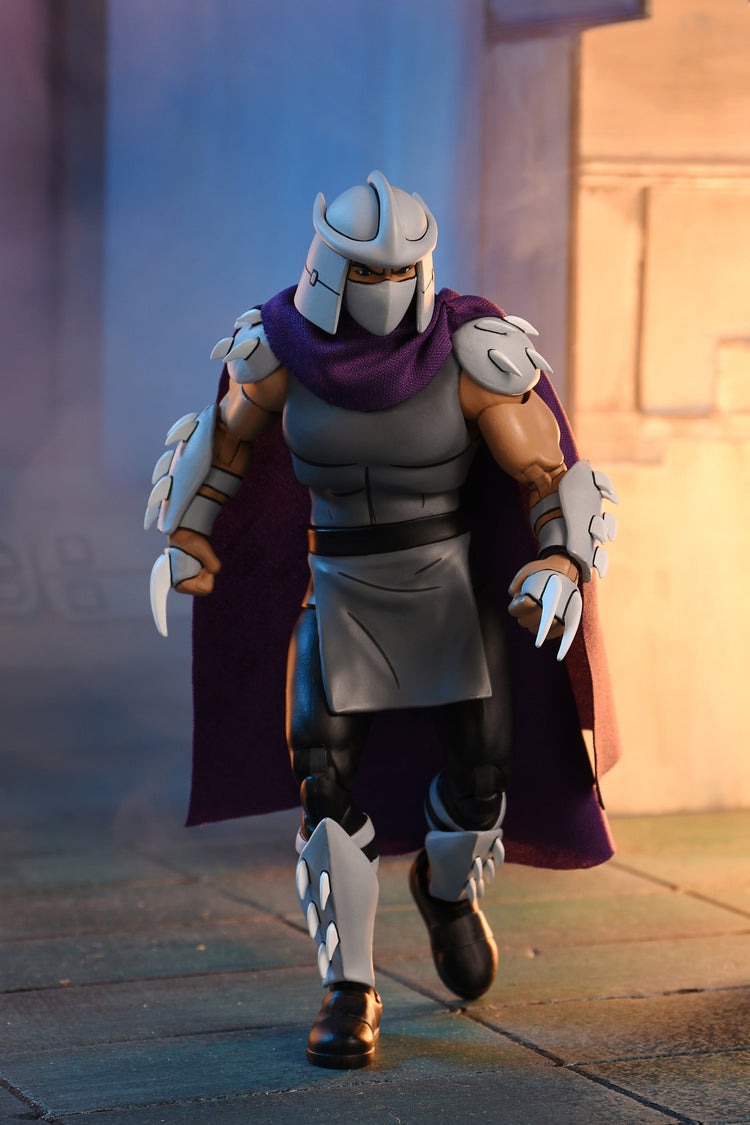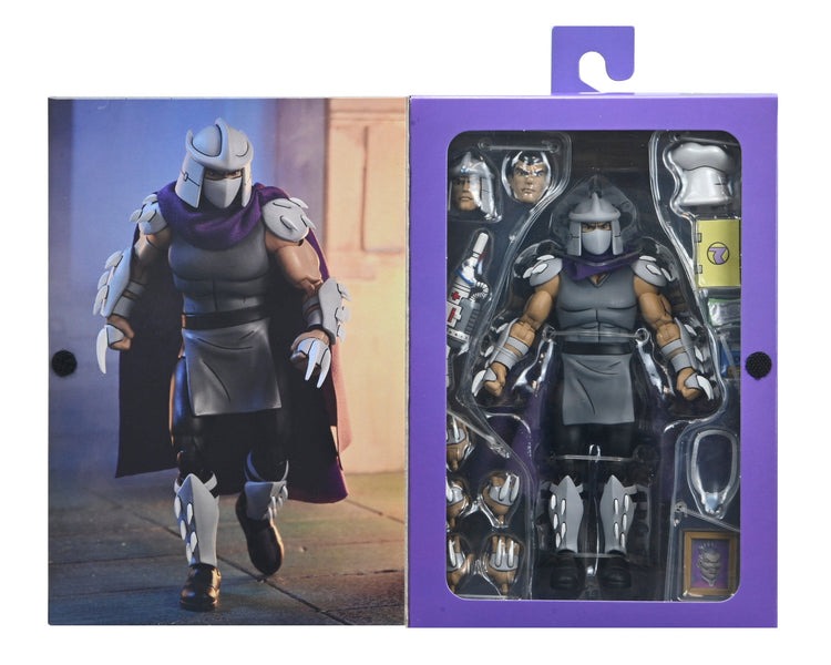 Based on the classic 1980s Teenage Mutant Ninja Turtles cartoon series! Here comes The Shredder with an all-new sculpt! This Ultimate 7-inch scale action figure of the fearsome Foot Clan leader includes interchangeable heads and hands and episode-specific accessories. Comes in collector-friendly window box packaging with opening front flap. Fun to collect!