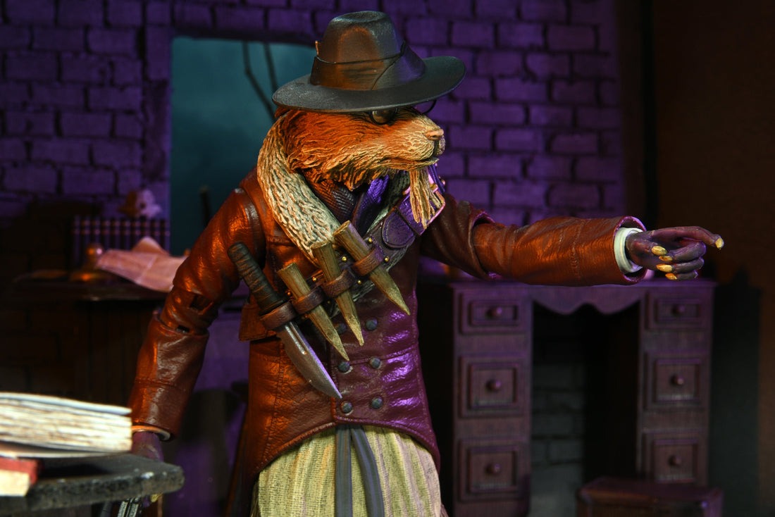 Trouble with monsters? Call the rat with the hat! Splinter as Van Helsing reimagines the Turtles’ sensei as the famous vampire hunter, and he’s equipped with the tools for taming terrors! This 7” scale figure includes crossbow, arrows, quiver, knife, stakes, interchangeable heads and swappable hands. Comes in collector-friendly window box packaging with opening flap.