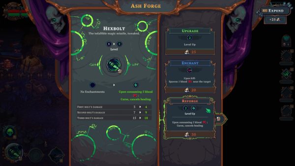 - Death is not the end and despite permadeath, players will be resurrected and keep their progress. Gathered necromantic resources can be used to restore the citadel hub.