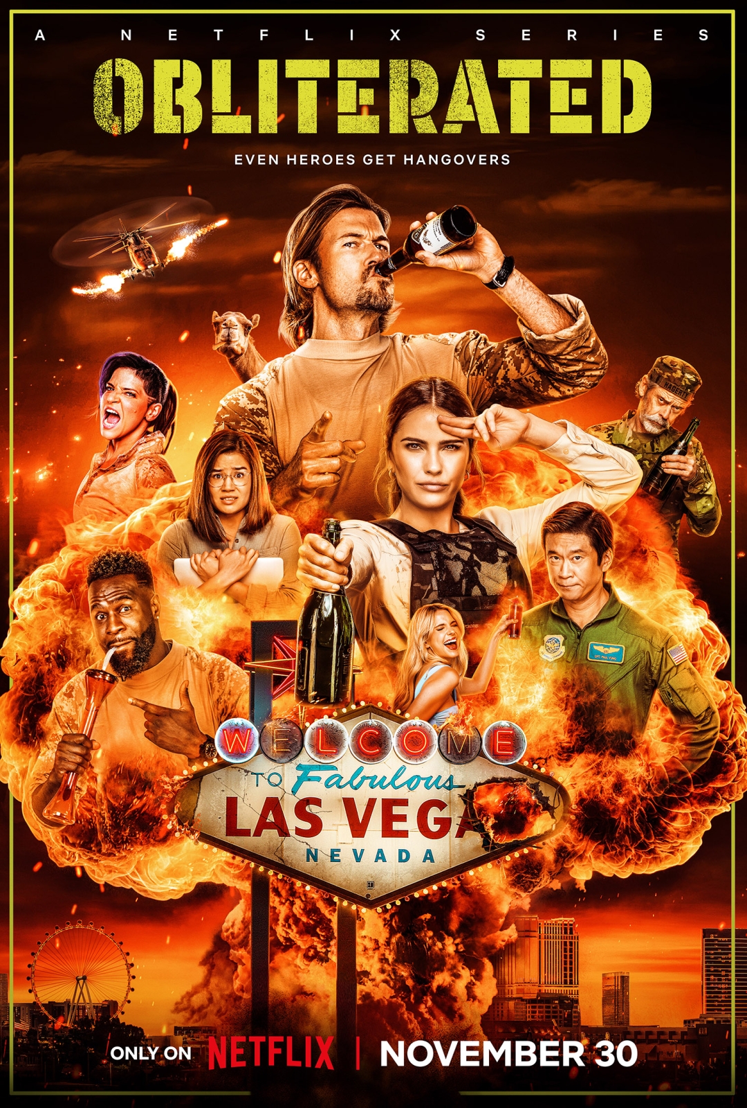 Obliterated is a high octane action-comedy that tells the story of an elite special forces team who thwarts a deadly threat to Las Vegas. After their celebratory party, filled with booze, drugs and sex, the team discovers that the bomb they deactivated was a fake. The now intoxicated team has to fight through their impairments, overcome their personal issues, find the real bomb, and save the world.