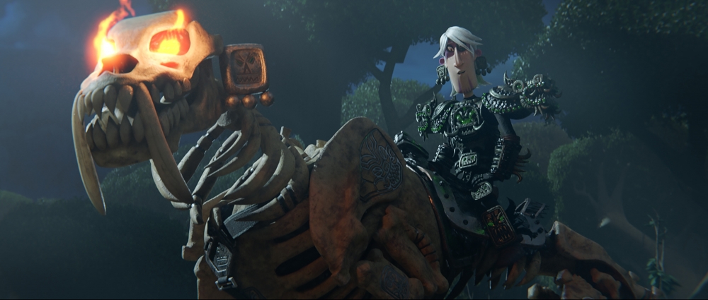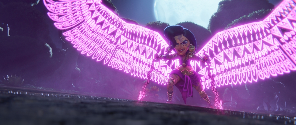 Supporting Zoe Saldaña is a star-studded voice ensemble featuring Gabriel Iglesias as Picchu, Allen Maldonado as Rico, Stephanie Beatriz as Chimi, Diego Luna as Zatz, Gael García Bernal as The Jaguar Triplets, Alfred Molina as the God of War, Kate del Castillo as the Goddess of Death, Danny Trejo as the God of Earthquakes, Cheech Marin as the Gods of Wind & Storm, Rosie Perez as the Goddess of Gators, Queen Latifah as Gran Bruja, Wyclef Jean as Gran Brujo, Jorge R. Gutiérrez as King Teca, Sandra Equihua as Queen Teca, Isabela Merced as the Widow Queen, Chelsea Rendon as the Goddess of Tattoos, Joaquín Cosío as the God of Bats, Carlos Alazraqui as the God of Dark Magic, Eric Bauza as the God of Jungle Animals and Rita Moreno as Ah Puch.