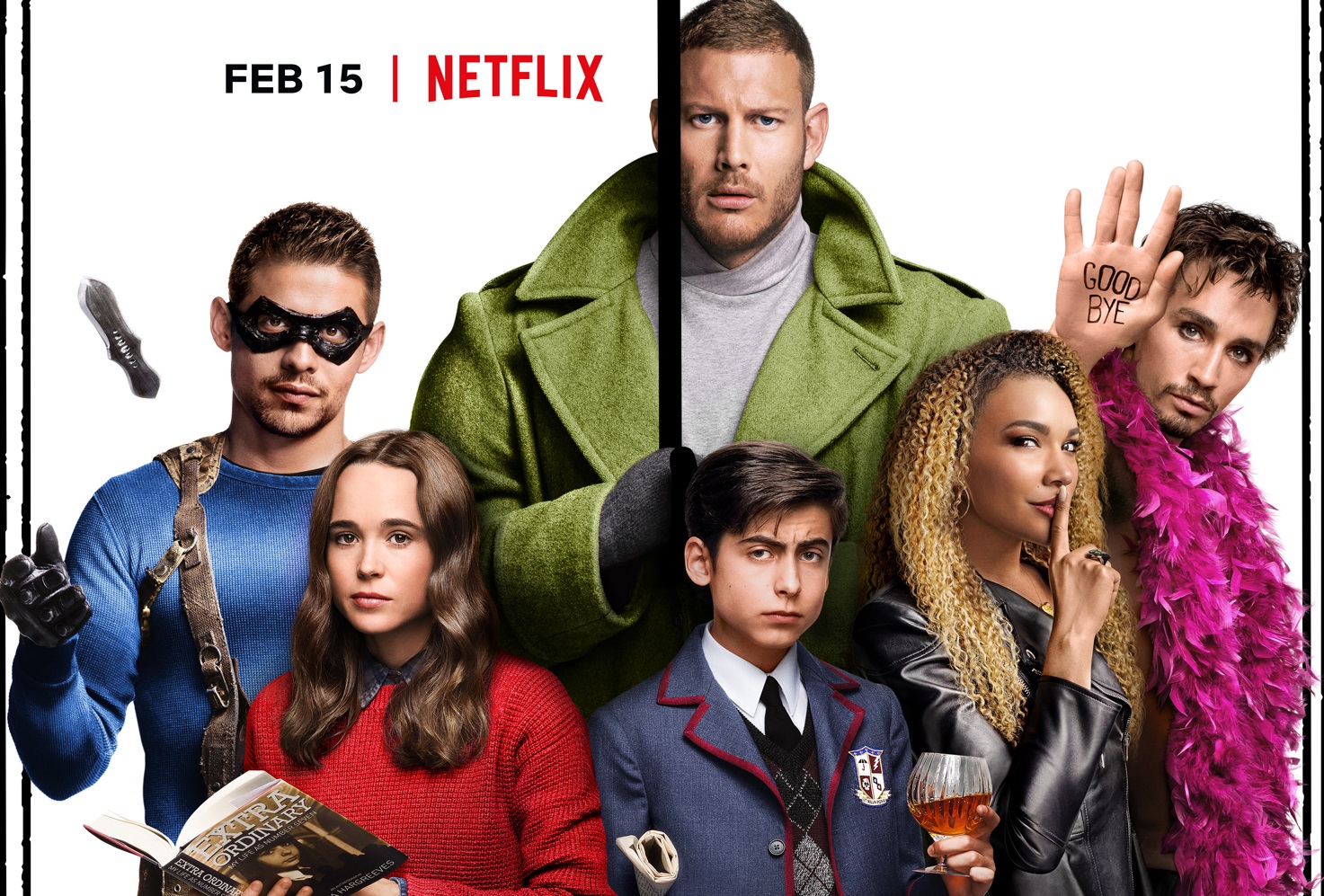 The Umbrella Academy follows the dysfunctional family of the Hargreeves, a group of young superheroes that come together in order to solve their father’s mysterious murder. Ellen Page (Flatliners) stars as Vanya, Tom Hopper (Black Sails) as Luther, Emmy Raver-Lampman (Broadway’s Hamilton) as Allison, David Castañeda (Soldado) as Diego, Robert Sheehan (Misfits) as Klaus and Aidan Gallagher (Nicky, Ricky, Dicky & Dawn) as Number Five.