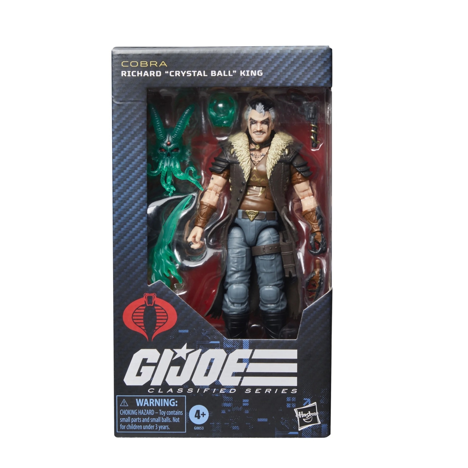 New to the G.I. Joe Classified Series line, Richard “Crystal Ball” King comes ready for adventure, with multiple points of articulation for high poseability. This Richard “Crystal Ball” King figure contains 8 character-inspired accessory pieces including an alternate hand, D.I.R.E. (Dread-Inducing Responsive Energy) Tech-projected monster mask, lenticular hypno-shield with attachable fear manifestation, spectrally-charged sword, crystal ball with ghostly tendrils, and a weapon accessory.