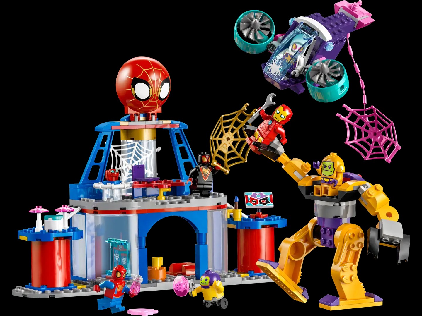 - Super Hero playset – Includes LEGO® minifigures of Spidey, Iron Man, Miles “Spin” Morales, Ghost-Spider and Zola