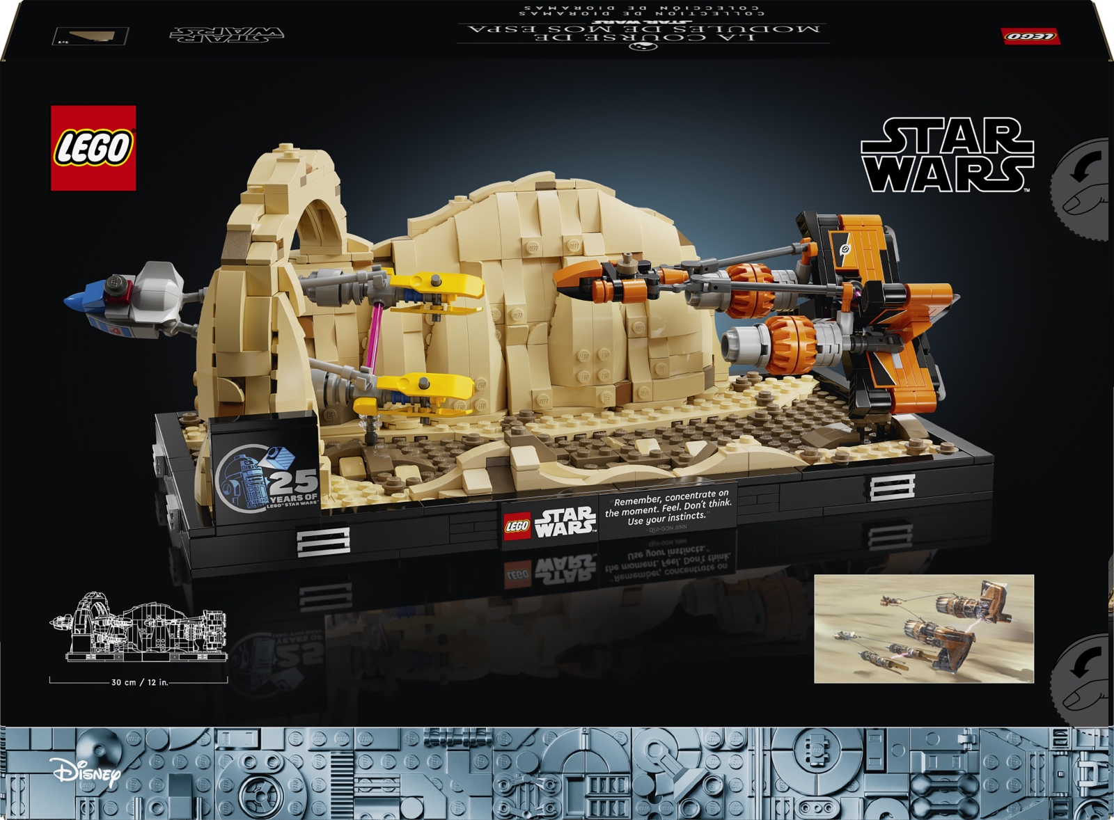 • Made for display – The set features the Arch Canyon part of Tatooine’s Mos Espa Podracing circuit, plus a LEGO® Star Wars™ 25th anniversary brick and a plaque with a Qui-Gon Jinn quotation