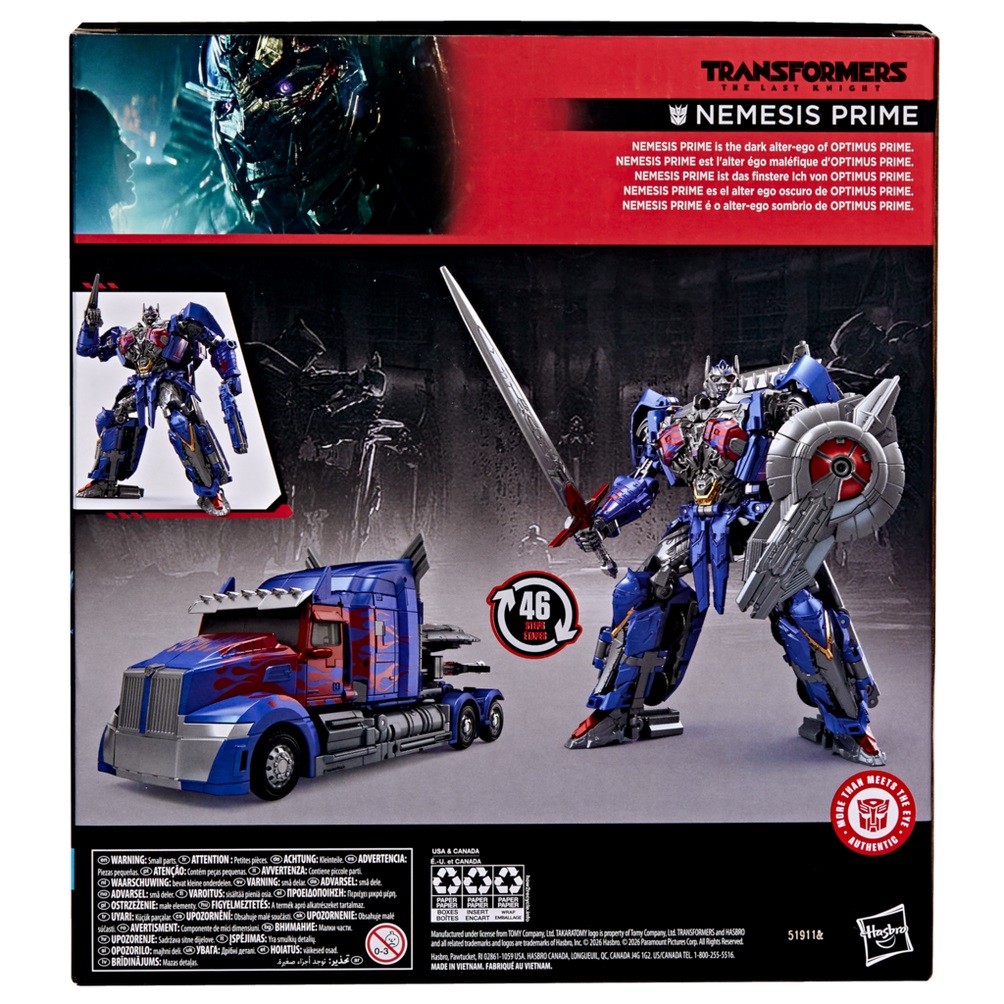 • THE LAST KNIGHT NEMESIS PRIME: This Transformers Studio Series Nemesis Prime figure features film-inspired deco and details