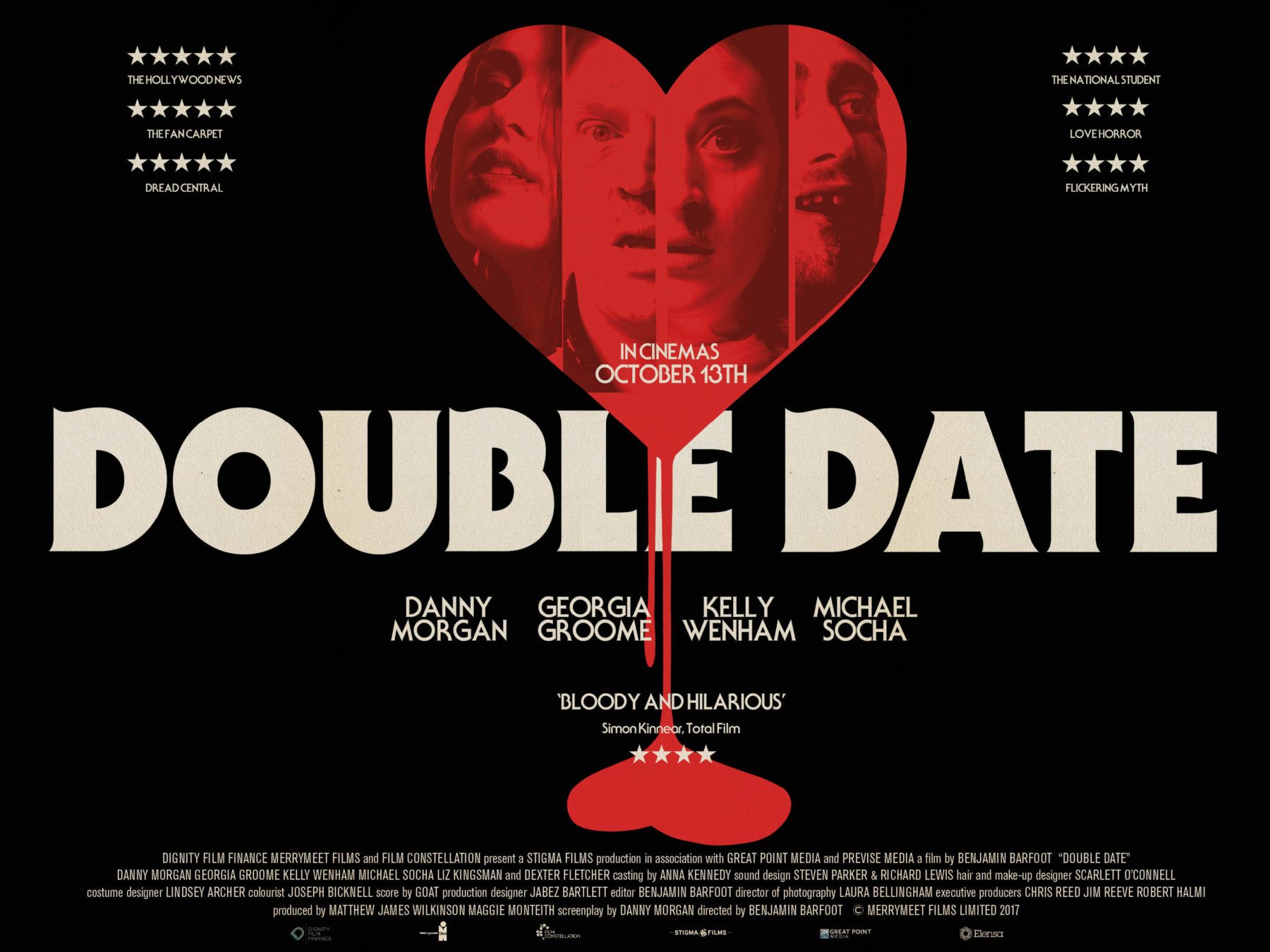 Ahead of its UK release next month, a poster and trailer have arrived online for the acclaimed comedy horror Double Date. Directed by Benjamin Barfoot, the film stars Danny Morgan, Georgia Groome, Kelly Wenham, and Michael Socha; check them out below…