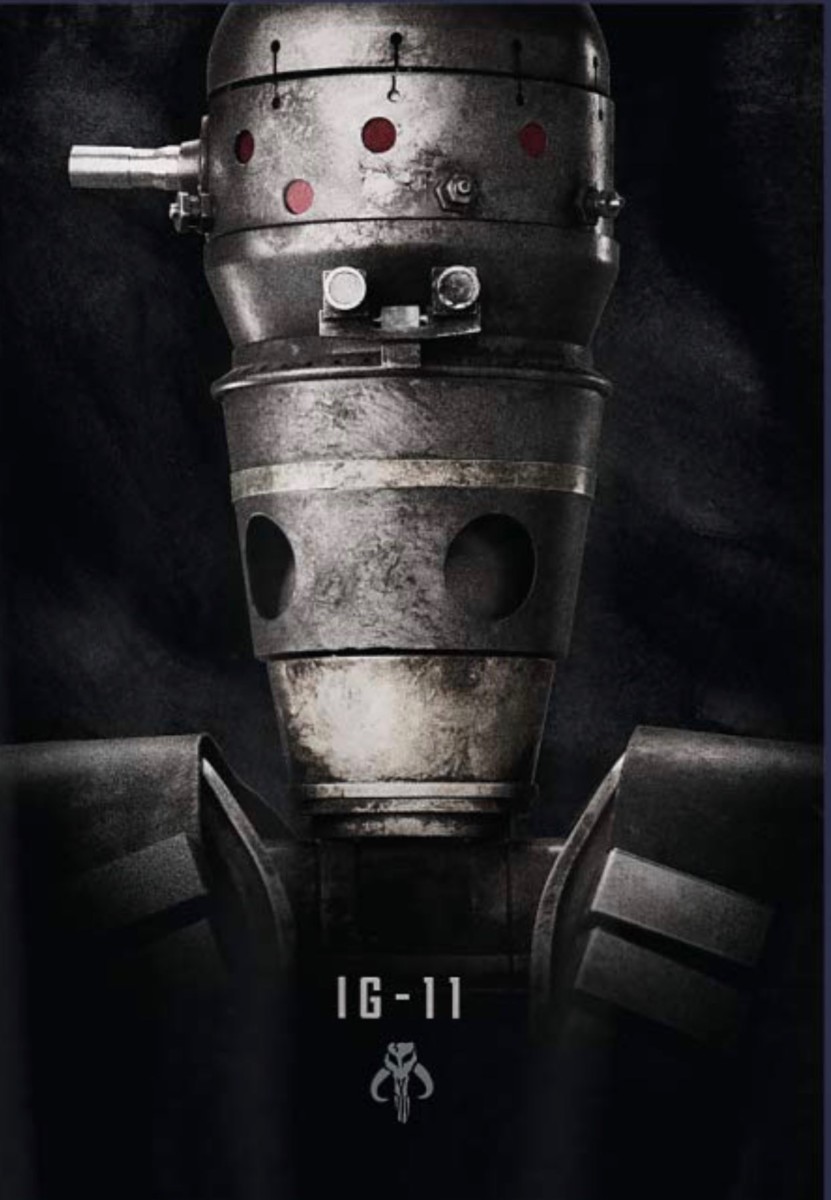 Thanks to Making Star Wars, we’ve got a look at some newly released promotional artwork from the upcoming Disney+ Star Wars series The Mandalorian, which features the bounty hunter droid IG-11, along with Pedro Pascal’s titular gunslinger…