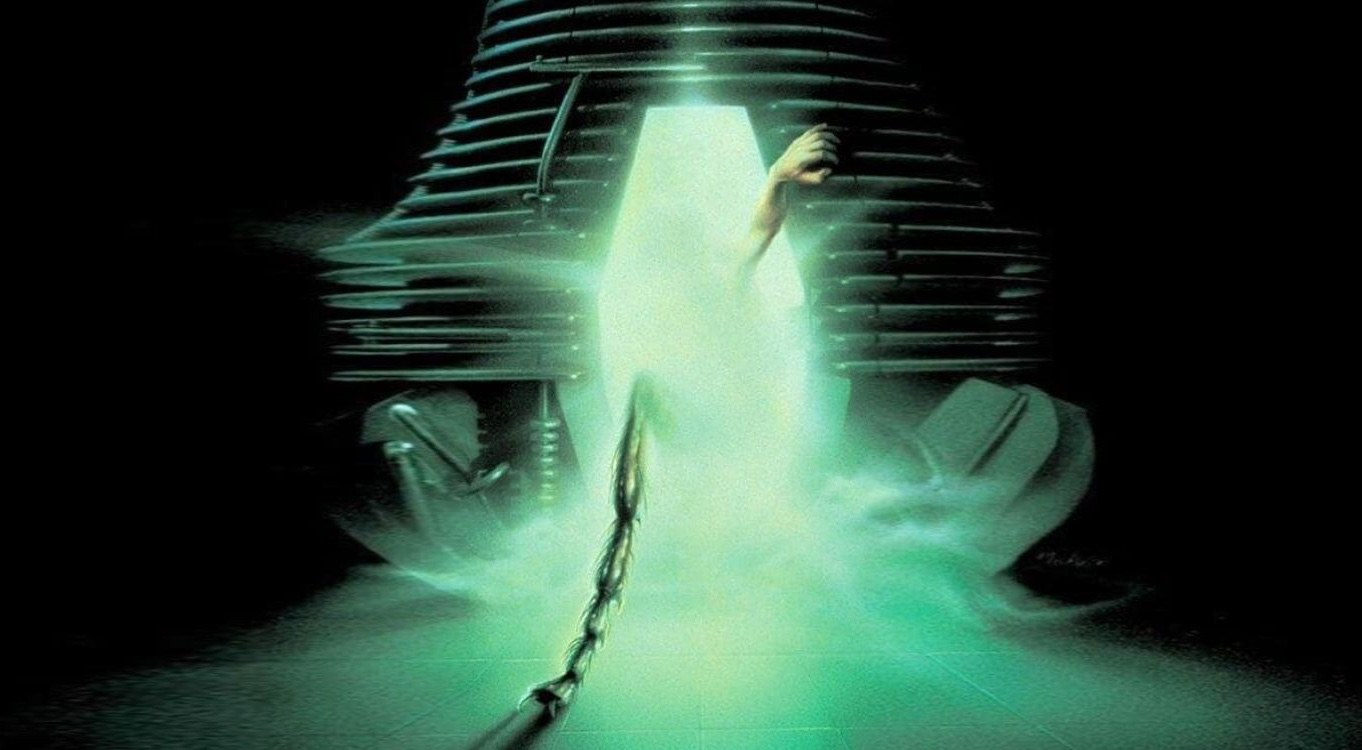 The Fly, directed by David Cronenberg, is a body-horror film about a scientist, Seth Brundle, played by Jeff Goldblum, who is working on a teleportation device. An accident causes Brundle’s DNA to be mixed with that of a fly, beginning his transformation into something horrific. It was based on George Langelaan’s 1957 short story, which was adapted into the 1958 film starring Vincent Price.