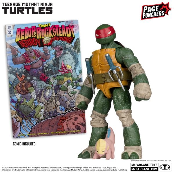 McFarlane Toys has officially unveiled a new wave of Teenage Mutant Ninja Turtles Page Punchers action figures for Raphael, Michelangelo, Rocksteady and Bebop, which are inspired by the appearance of the characters in IDW Publishing’s comic books. They are available to pre-order now, priced at $27.99 each; take a look here…