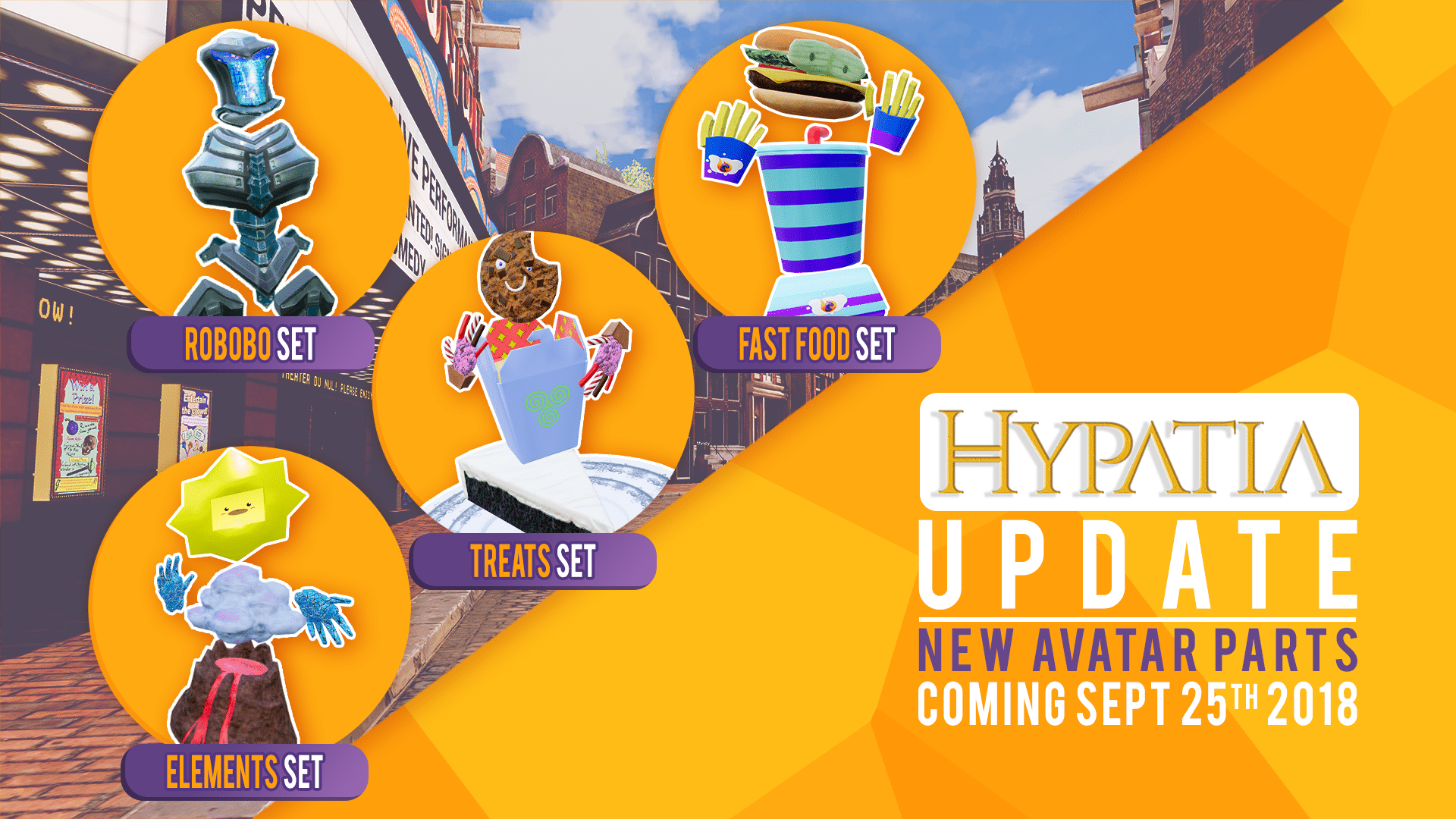 As mentioned, this update includes four new avatar packs – these sets start with two food themed sets, the Treat Set, and the Fast Food Set; second is the Elements Set and finally is the Robobo Set. This takes Hypatia’s avatar sets up to 19 and provides more than 130 parts to allow players to mix and match to create their own avatar.