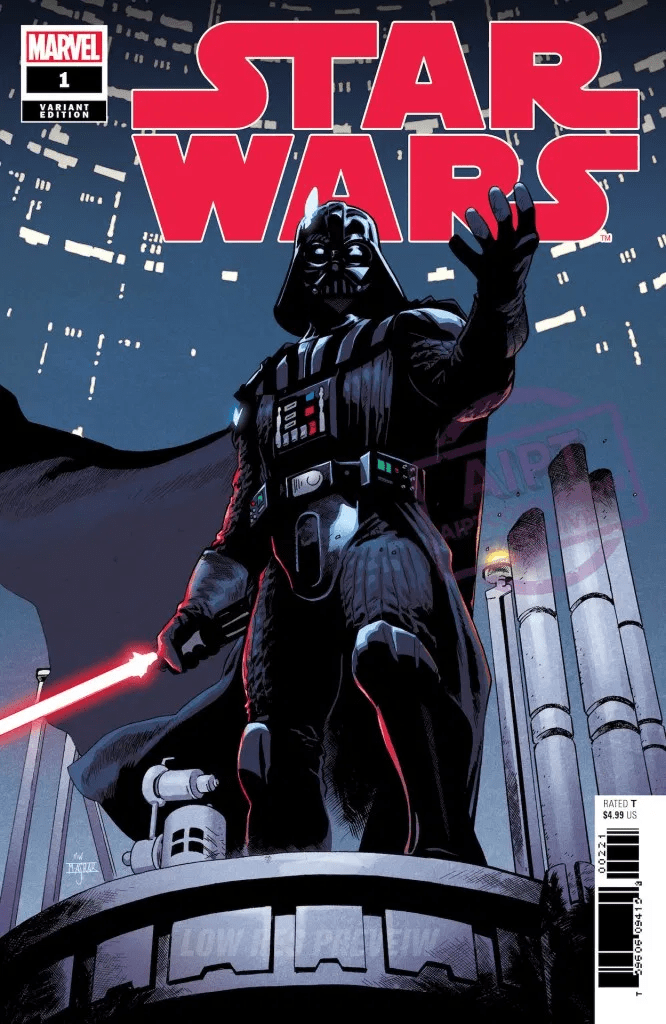 Marvel is set to relaunch its main Star Wars comic book title this January with a new series set in the aftermath of Star Wars: Episode V – The Empire Strikes Back, and thanks to Adventures in Poor Taste, we’ve got a look at three variant covers for the first issue from artists Mahmud Asrar (Darth Vader), Adam Hughes (Luke Skywalker) and Jen Bartel (Leia Organa); check them out here…