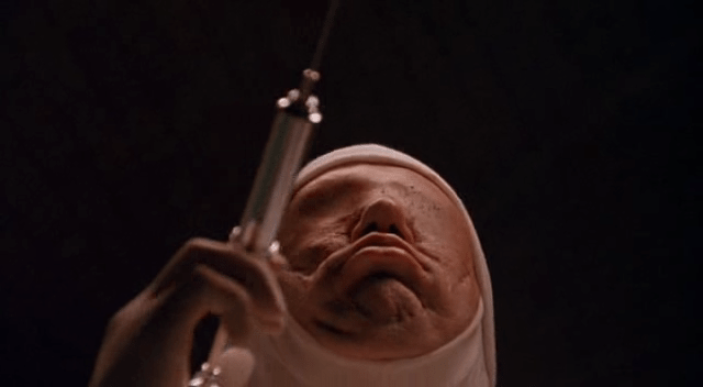 Surely the most disturbing scene of the film is when Jacob is wheeled through a hospital that becomes increasingly hellish, with deformed patients surrounding Jacob on all sides while dismembered and bloodied limbs litter the floor.