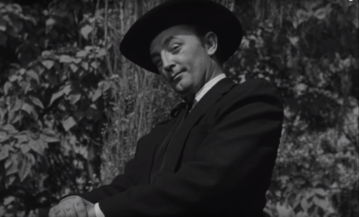 There are a lot of reasons to watch The Night of the Hunter but if I had to pick just one it’s this: Robert Mitchum. Mitchum’s outstanding performance as Harry Powell is one of the great villain performances of all time, a devious character whose charming and fatherly exterior as a God-fearing preacher hides a creature of barely repressed sexual rage and murderous intent.