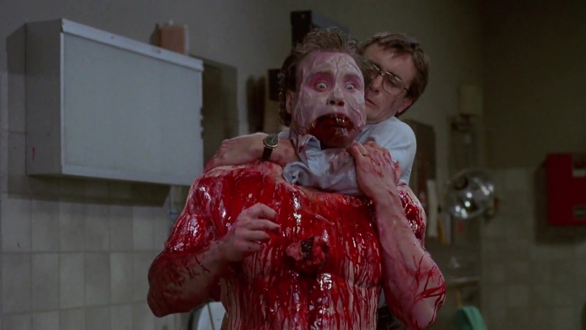 Based on the short story “Herbert West-Reanimator”, the film follows a familiar story of a mad scientist with a burgeoning God complex who develops a serum that can seemingly resurrect the dead, ignorant to the horrific consequences that will arise from such an endeavour. With a story like this, the film could have approached the material with a serious mindset, crafting a meditative piece tackling weighty themes about life, death and the dangers of playing God. However, that’s not what Stuart Gordon and his co-writers decided to do. Instead, they saw the funny side of the story and decided to create a gruesome horror film that, while glancing at these themes, often did so with a knowing and wicked sense of humour.