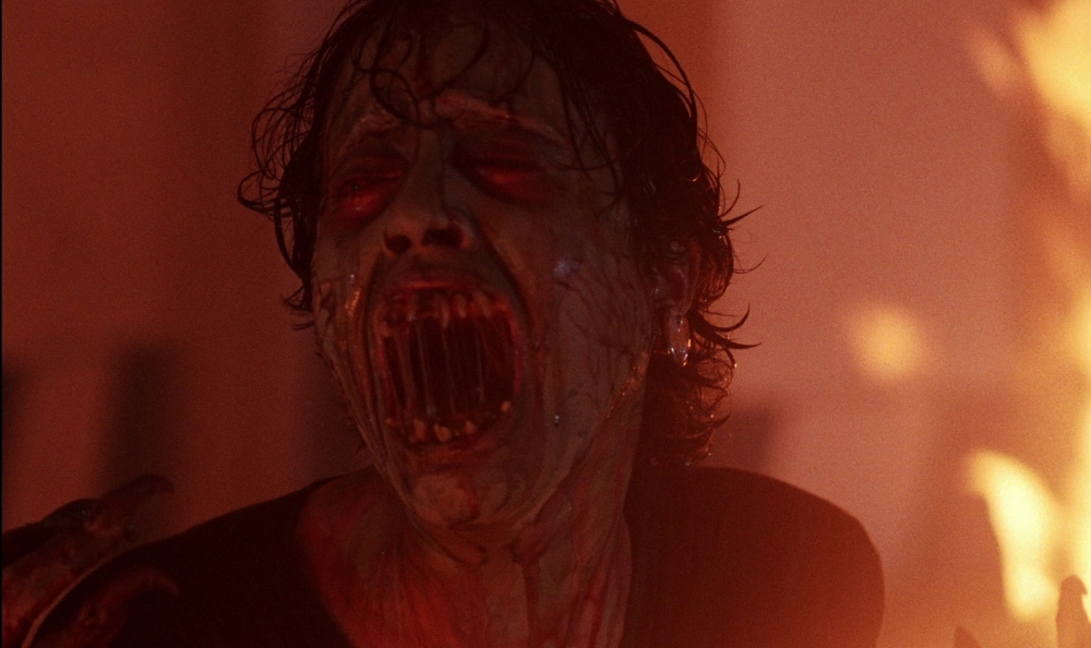 The music, consisting of an original score by Simon Boswell, is a largely forgettable one that just hovers over scenes providing the necessary ambience. Although one track did sound eerily reminiscent of the music from the original Doom. It at least made me wish I was playing Doom. As with the first film, we also have a soundtrack featuring several tracks from various 1980s bands, and while it lacks the thumping heavy metal stylings that made the original so much fun, it’s still decent, featuring the likes of The Smiths and The Cult, with the latter appearing via their insanely catchy hard rock hit “Rain”, adding a nice punch to a gruesome demonic transformation.