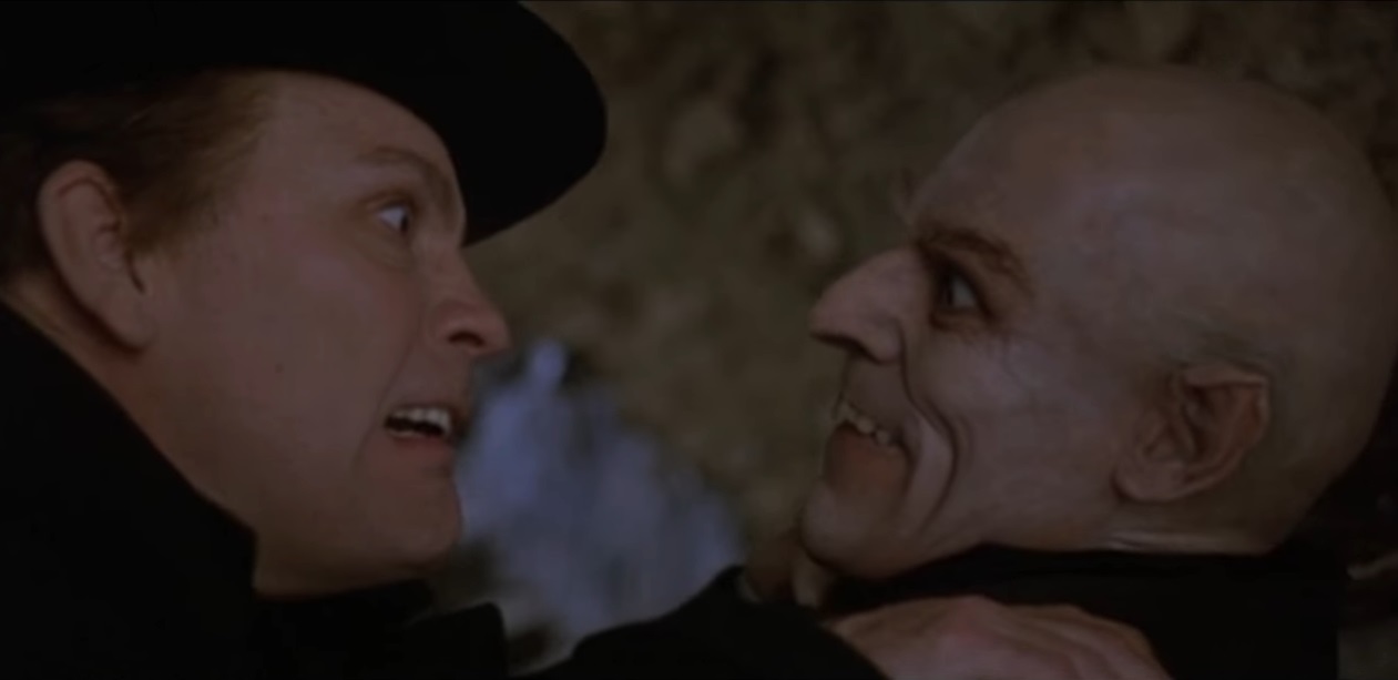 The aspect of Shadow of the Vampire that I loved was its premise. While there have been horror films set around the making of horror films, they have mainly focused on fictional creations. Think of the Stab films, the funny in-joke ‘franchise within a franchise’ of the Scream franchise (take a drink every time I said franchise). Shadow, on the other hand, offers us a depiction of the making of a real horror film, with a cast of characters who were all real people, giving the film an almost docudrama approach, albeit with the added horror twist in that actor Max Schreck, who took on the infamous role of Count Orlok, is portrayed as an actual vampire. I’d love to see a horror docudrama approach done with other famous horror films. I can imagine a fictionalised version of the making of The Exorcist featuring William Friedkin directing the Devil himself, with the Devil struggling against the overpowering insanity of Friedkin.