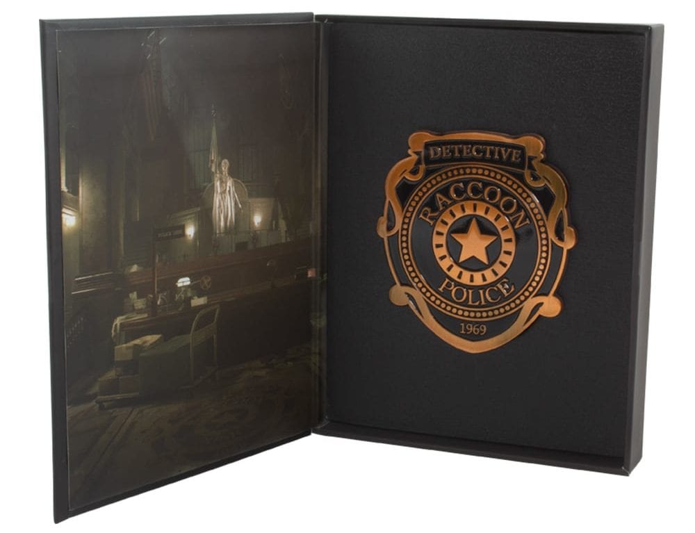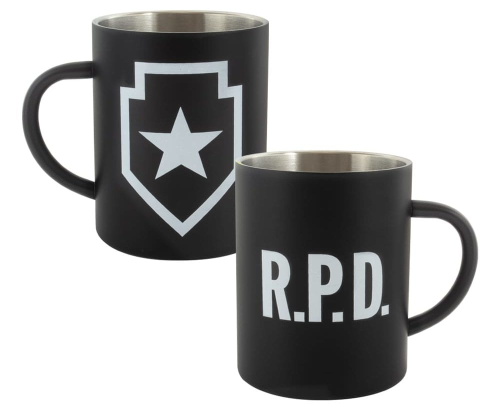 Other themed items include a Raccoon City Police Department pin badge based on the RPD officer’s badge with a very nice presentation box, and a steel mug that can be used to sup herbal beverages from.