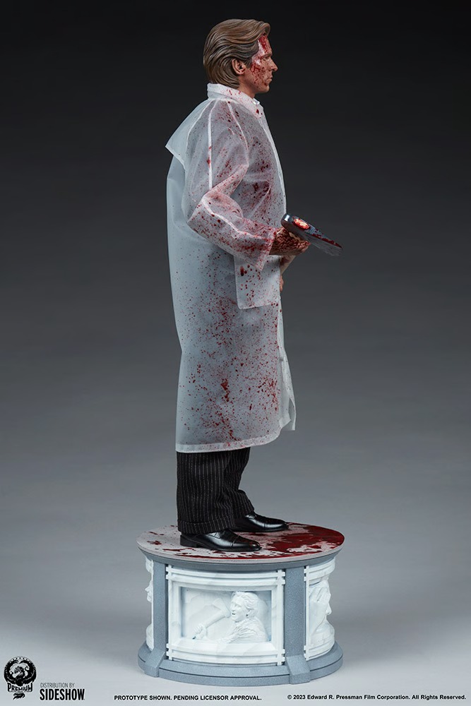 Sideshow and Premium Collectibles Studio present the American Psycho (Bloody Version) 1:4 Scale Statue, a cult classic movie collectible with killer looks and killer instincts. This gory edition of businessman Patrick Bateman is into murders and executions mostly.