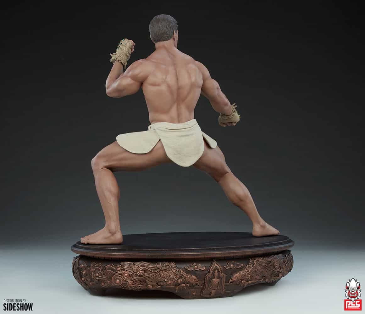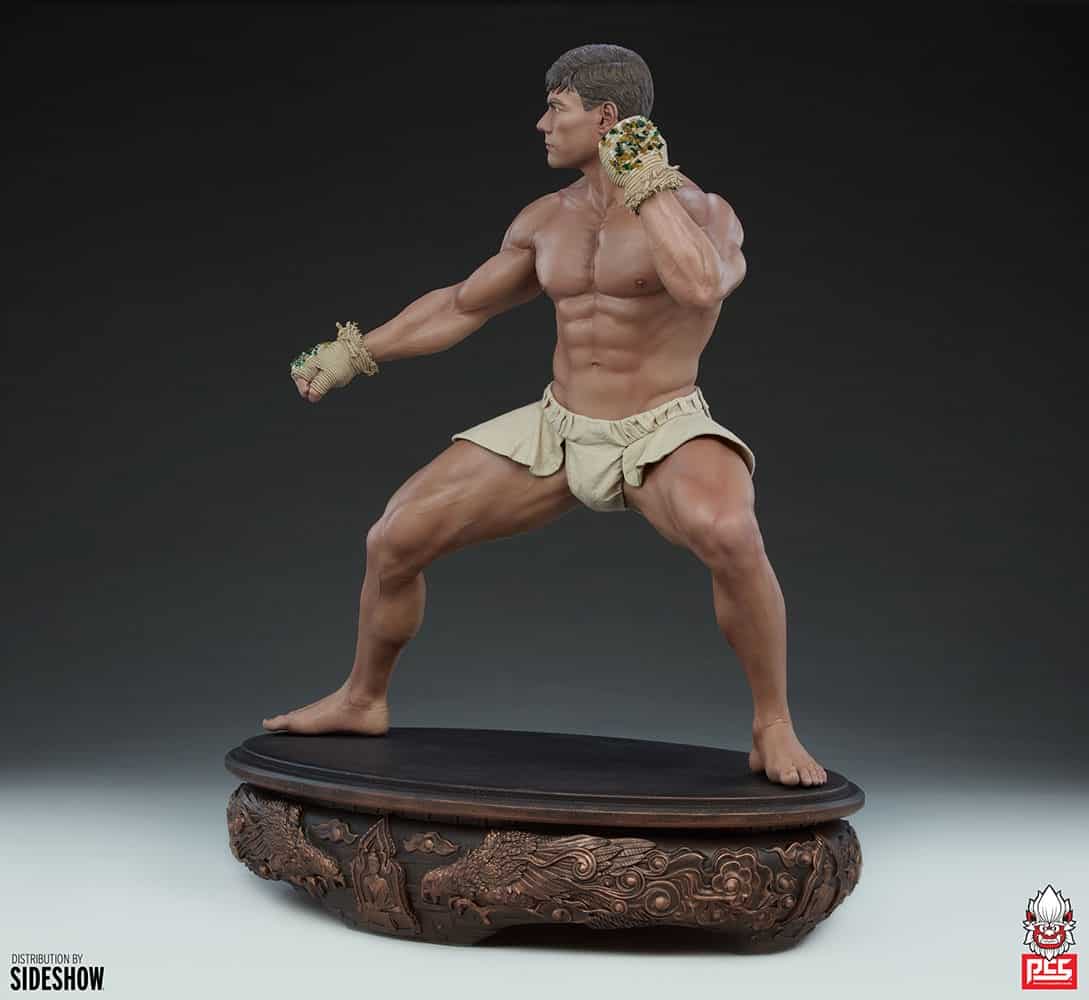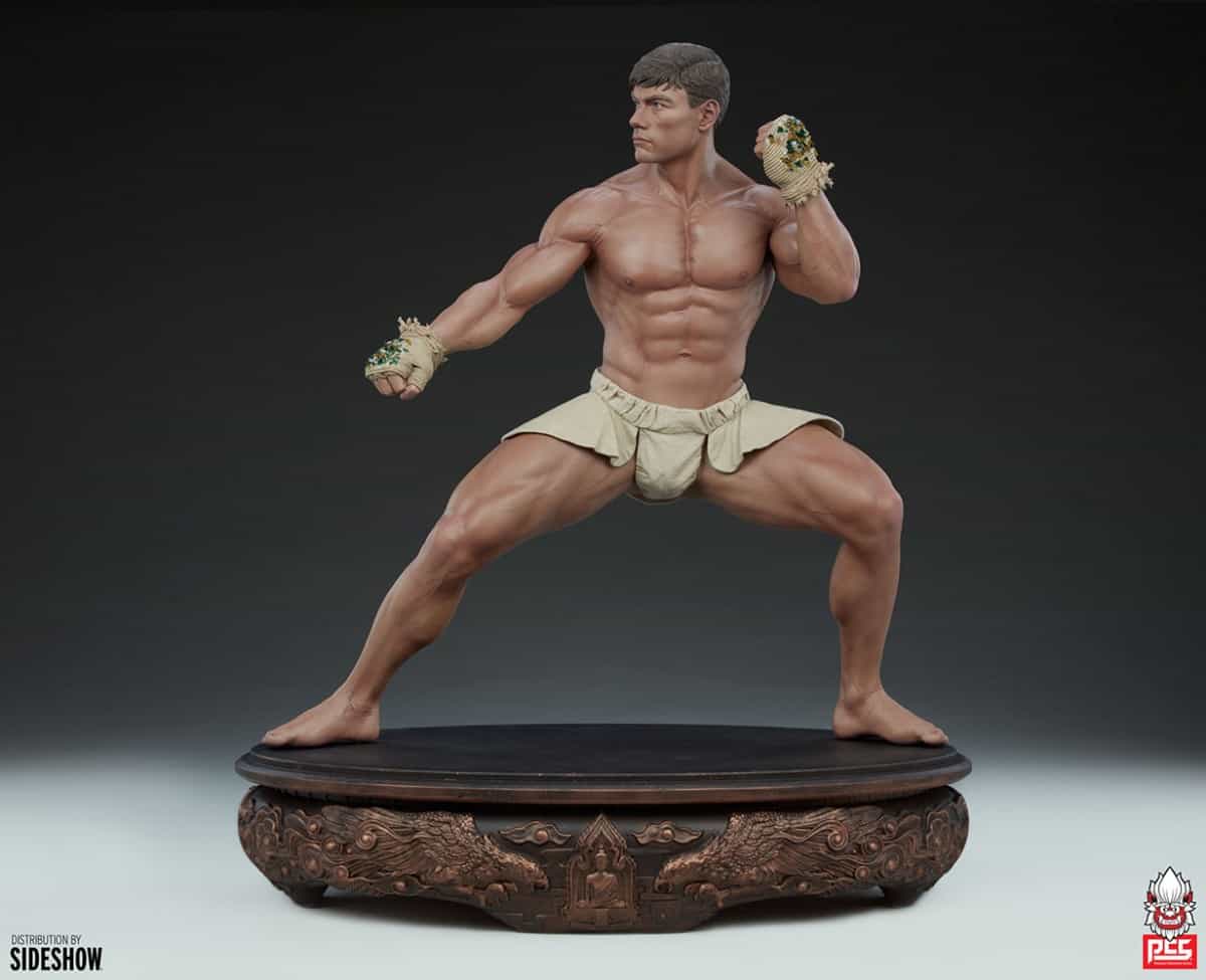 Inspired by Van Damme’s fierce passion for martial arts, the JCVD (Jean-Claude Van Damme) Muay Thai 1:3 Scale Tribute Statue is a mixed media collectible with a fully sculpted physique, sculpted hand-wraps, and traditional-style beige fabric Muay Thai trunks. Taking a wide, powerful stance on a bronze-painted base detailed with dragons, this collectible statue is a must-have for fans of Jean-Claude Van Damme and his legacy in film.