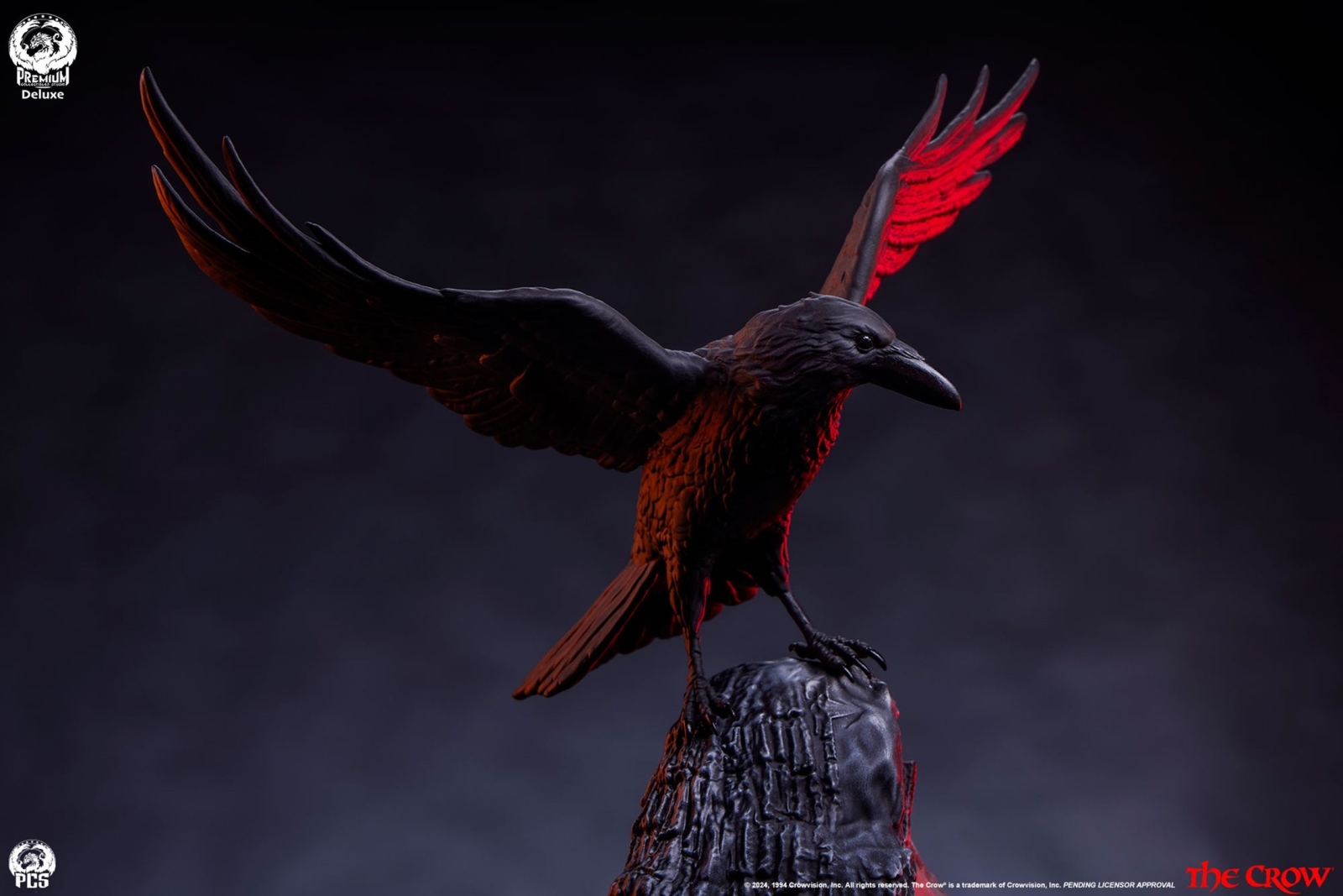 The Crow 1:3 scale statue is fully sculpted standing over 26” tall on an environmental base. Depicted in his tattered black duster with arms outstretched at his sides, this beautiful collectible recreates a pivotal scene in the fan-favorite film.