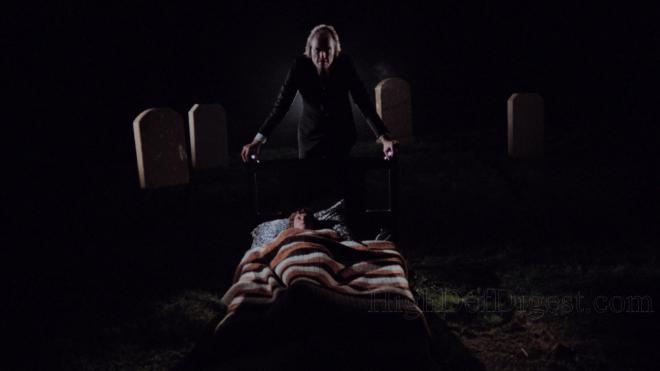 Of course, the star of the show is the late Angus Scrimm as the villainous ghoul known simply as The Tall Man. Standing at 6ft 4, Scrimm, with his slender, towering frame, ill-fitting suits (deliberately chosen to make him look taller), piercing, slightly quirky stare, purposeful stride and growling voice, makes for a sinister and commanding screen presence. In a wise move, Scrimm is used sparingly, with his limited screentime leaving a terrifying and iconic mark, particularly in the many dream scenes in which he often just looms over our heroes or lurks in a mirror bellowing “BOY!!!”.