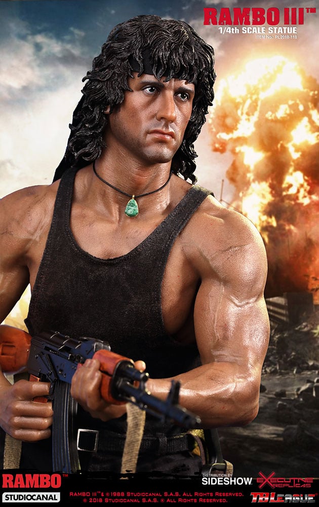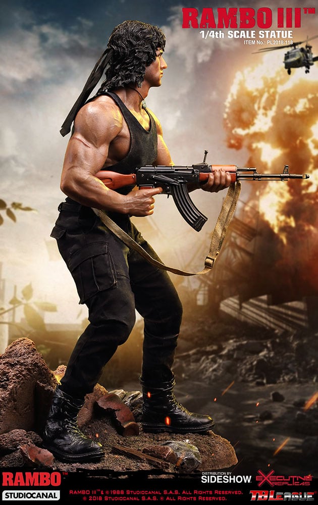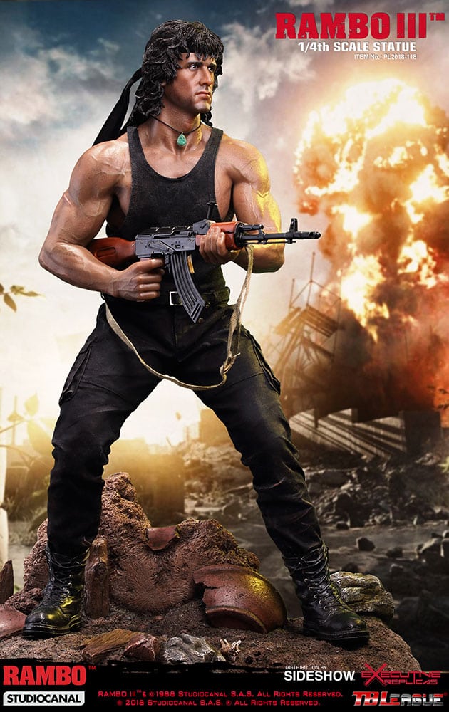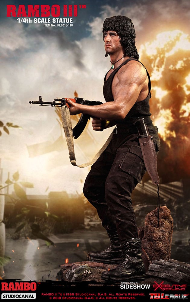 Sideshow and Phicen are proud to present the Rambo III 1:4 Scale Statue in polystone based on the likeness Sylvester Stallone as he appeared in the 1988 film Rambo III.