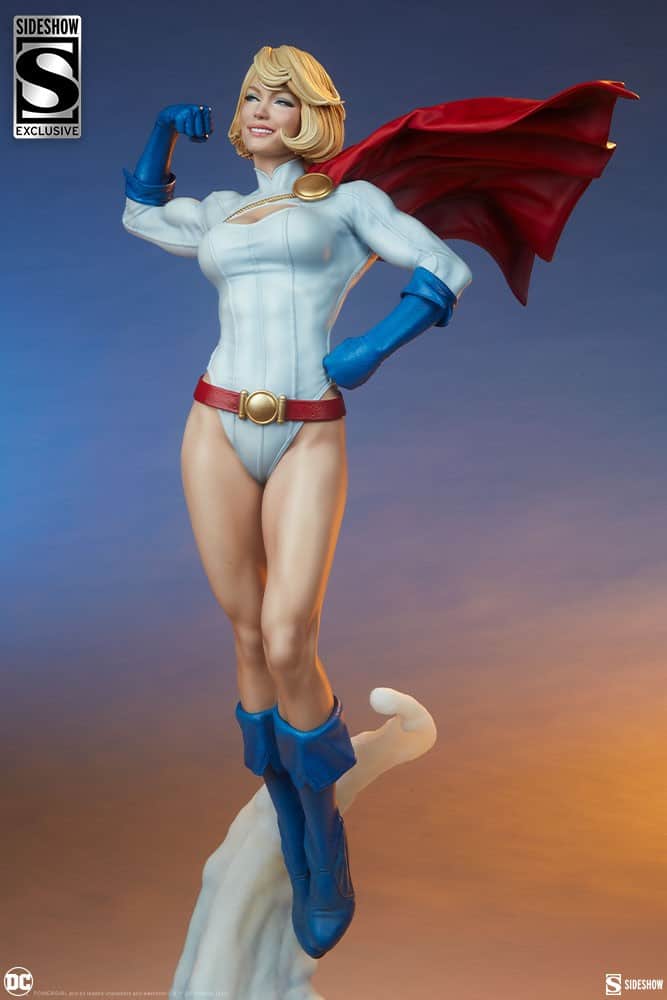 The Exclusive Edition of the Power Girl Premium Format Figure includes an alternate classic portrait, featuring a blonde bobbed hairstyle and a winning smile. Power up and pin-up your collection with this beautiful exclusive display option only from Sideshow.