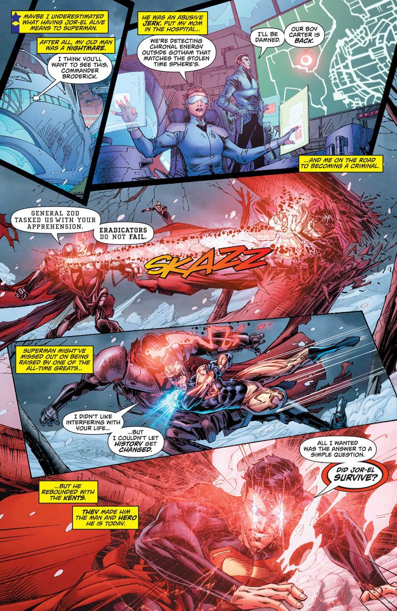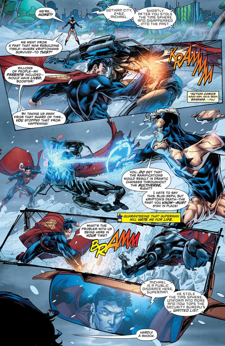 “Booster Shot” part three! Time is broken, and Superman and Booster Gold are in over their heads trying to repair it! Meanwhile, Lois Lane confronts her estranged father—and Sam Lane now stands face to face with his grandson Jon for the first time. As Clark struggles to reconcile the truth of his own father, can Lois Lane do the same?