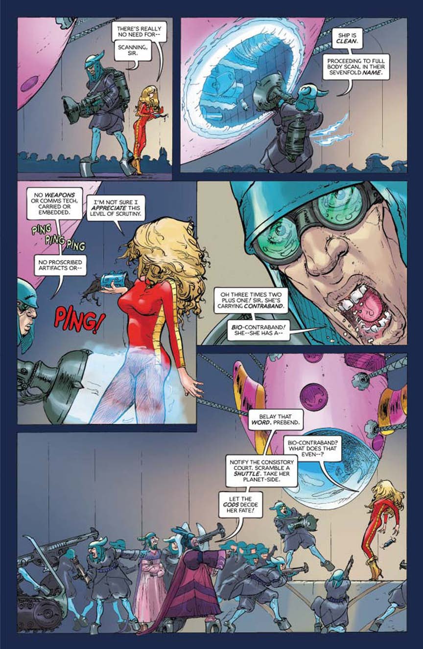 Earth’s star-crossed daughter is back! When Barbarella wanders into a war zone, the theocratic rulers of Parosia arrest and imprison her. A prison break is brewing, but now that she knows what the Parosians do to their own citizens Barbarella decides to make this fight her own…