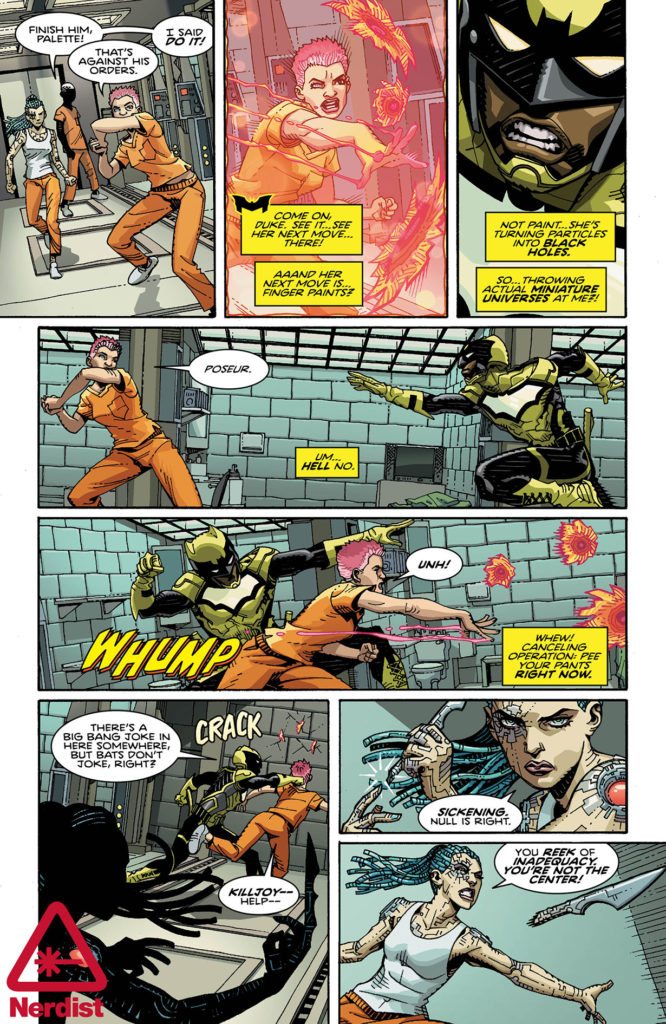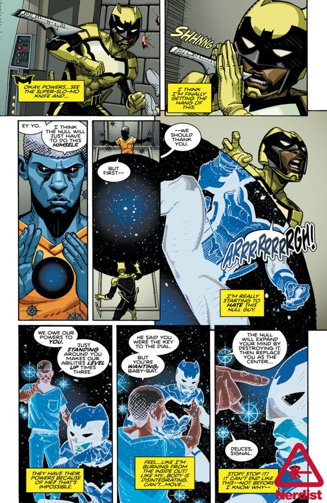 As Bruce Wayne fulfills his corporate duties at Wayne Industries, Duke Thomas (a.k.a. the Signal) embraces his role as Gotham City’s daytime protector while battling a deadly new rogues gallery. Could these teenage villains be connected to the recent metahuman population boom in the Narrows? To find out, the Signal must learn to work with a different kind of ally…the GCPD!
